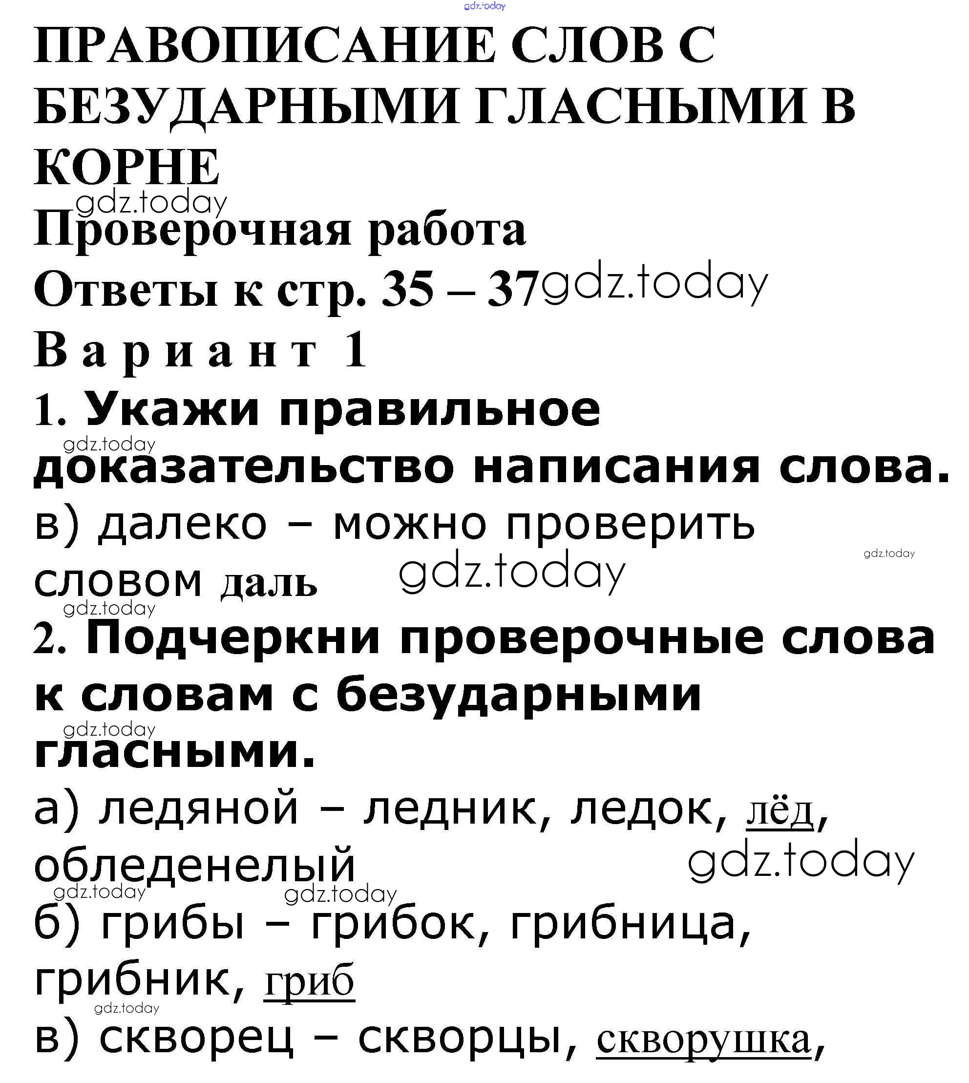 На страницах сайта gdz.today вы найдете учебный и вспомогательный материал, направленный на улучшения знаний школьной программы. ГДЗ - онлайн мир знаний Решение к теме "Правописание слов с безударными гласными в корне" 35-37 Проверочным и контрольным работам по Русскому языку для 3 класса Максимова ВАКО 2018