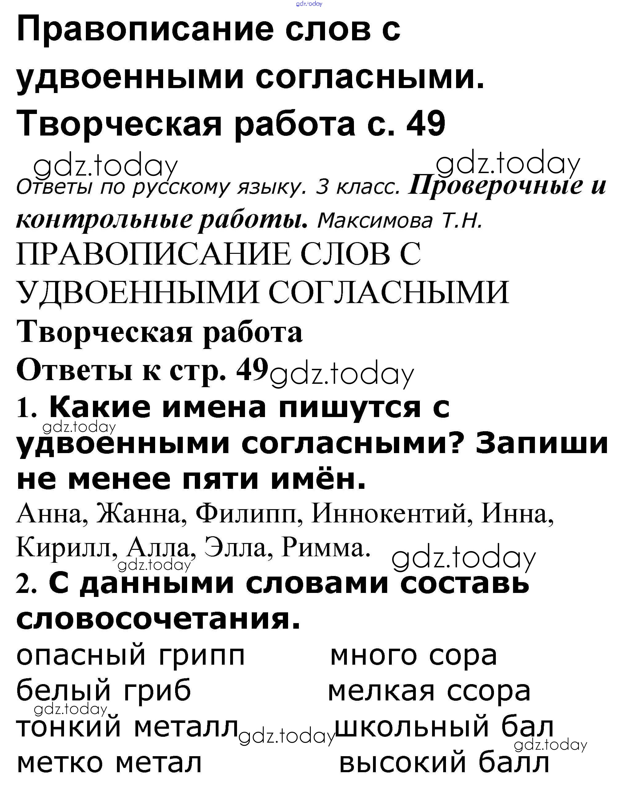 На страницах сайта gdz.today вы найдете учебный и вспомогательный материал, направленный на улучшения знаний школьной программы. ГДЗ - онлайн мир знаний Решение к теме "Правописание слов с удвоенными согласными" 49 Проверочным и контрольным работам по Русскому языку для 3 класса Максимова ВАКО 2018