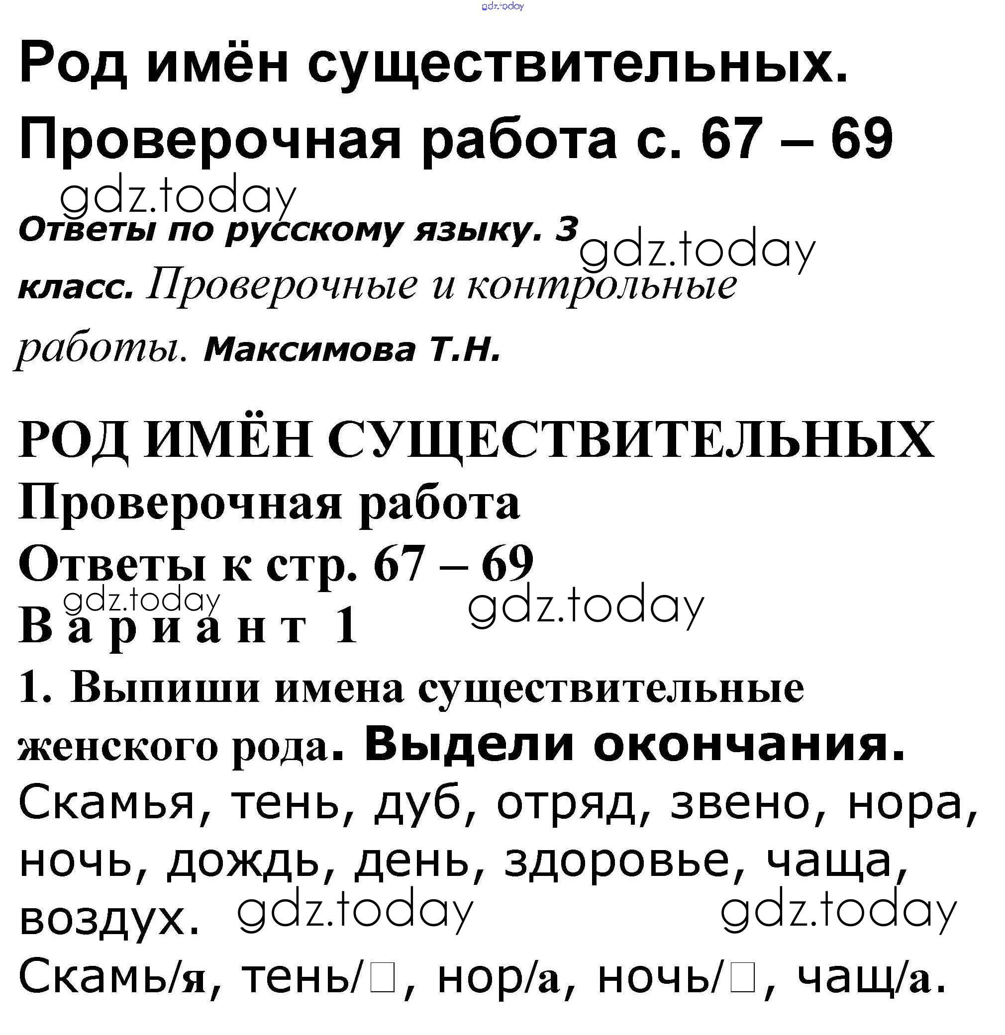 На страницах сайта gdz.today вы найдете учебный и вспомогательный материал, направленный на улучшения знаний школьной программы. ГДЗ - онлайн мир знаний Решение к теме "Род имён существительных" 67-69 Проверочным и контрольным работам по Русскому языку для 3 класса Максимова ВАКО 2018