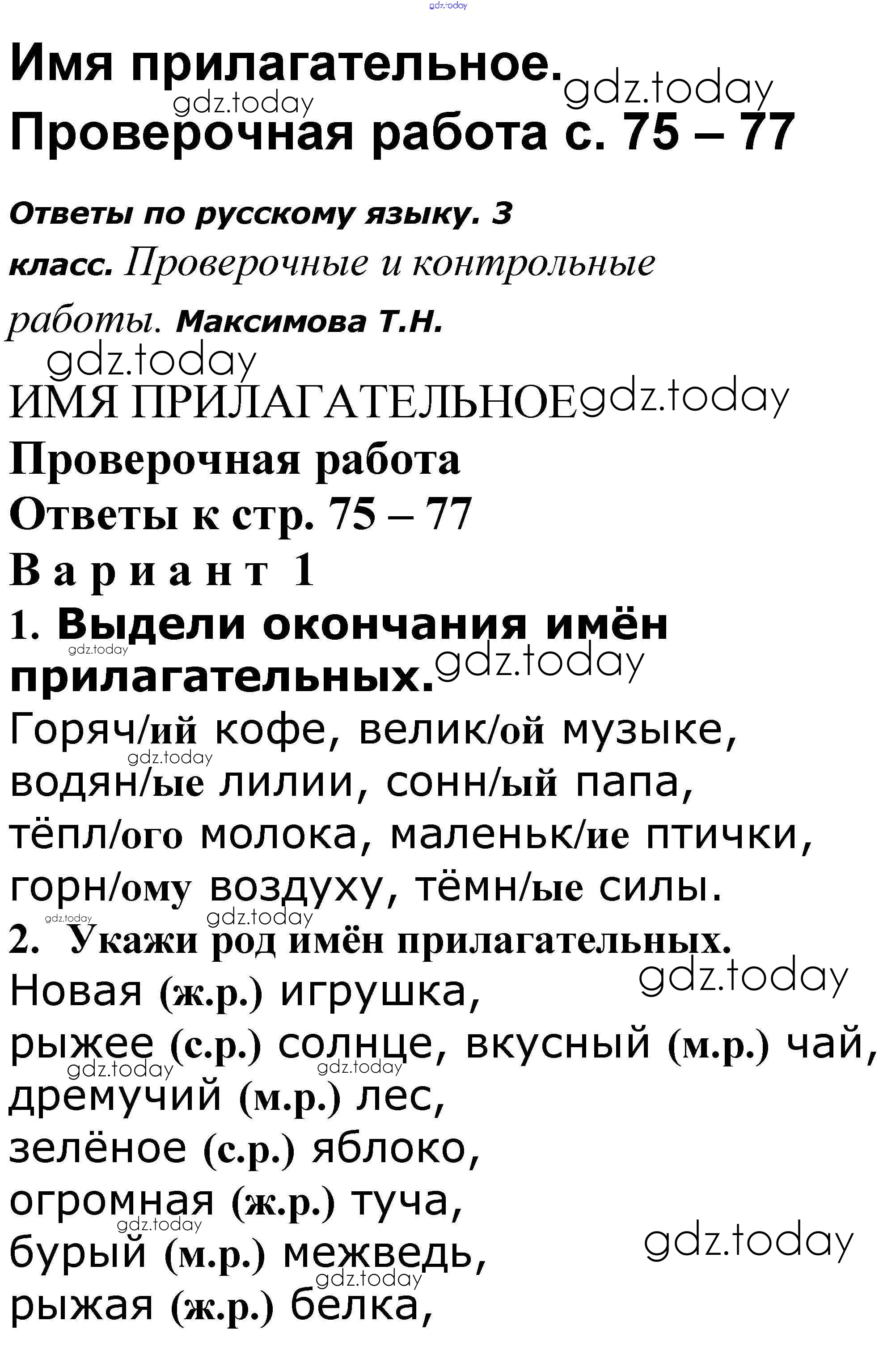 На страницах сайта gdz.today вы найдете учебный и вспомогательный материал, направленный на улучшения знаний школьной программы. ГДЗ - онлайн мир знаний Решение к теме "Имя прилагательное" 75-77 Проверочным и контрольным работам по Русскому языку для 3 класса Максимова ВАКО 2018