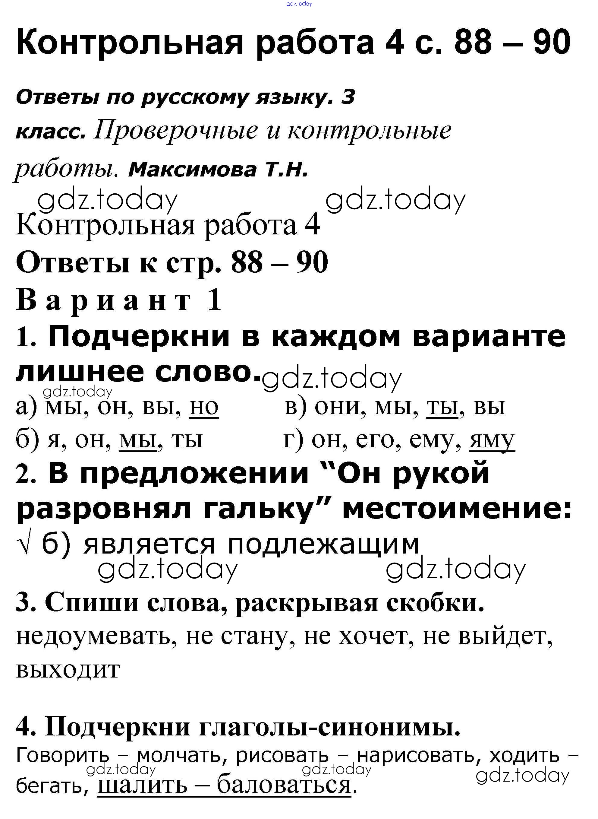 На страницах сайта gdz.today вы найдете учебный и вспомогательный материал, направленный на улучшения знаний школьной программы. ГДЗ - онлайн мир знаний Решение к теме "Глагол. Времена глаголов" 88-90 Проверочным и контрольным работам по Русскому языку для 3 класса Максимова ВАКО 2018