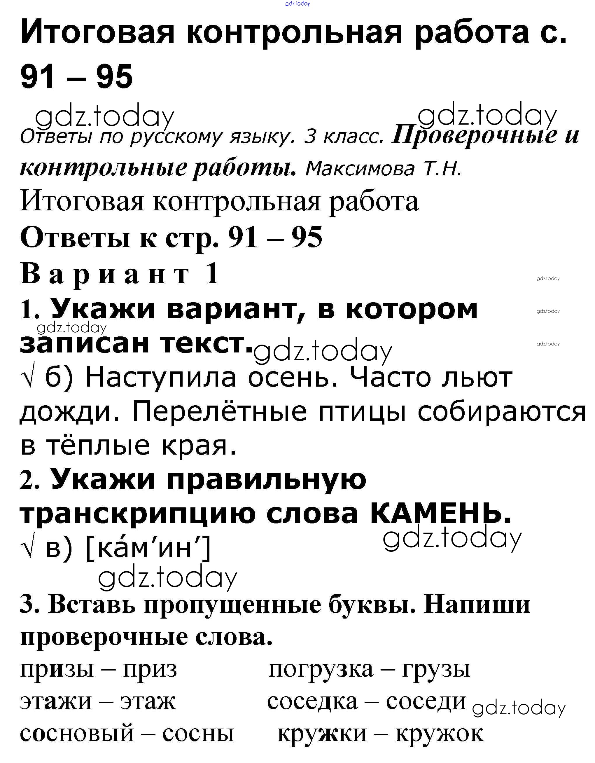 На страницах сайта gdz.today вы найдете учебный и вспомогательный материал, направленный на улучшения знаний школьной программы. ГДЗ - онлайн мир знаний Решение к теме "Глагол. Времена глаголов" 91-95 Проверочным и контрольным работам по Русскому языку для 3 класса Максимова ВАКО 2018