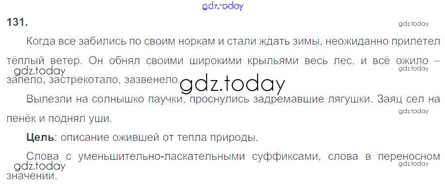 На страницах сайта gdz.today вы найдете учебный и вспомогательный материал, направленный на улучшения знаний школьной программы. ГДЗ - онлайн мир знаний Решение к упражнениям 131 Учебнику по Русскому языку для 3 класса Нечаева, Яковлева Фёдоров УМК 2014