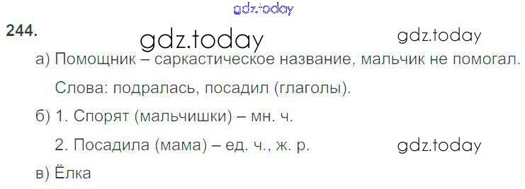 На страницах сайта gdz.today вы найдете учебный и вспомогательный материал, направленный на улучшения знаний школьной программы. ГДЗ - онлайн мир знаний Решение к упражнениям 244 Учебнику по Русскому языку для 3 класса Нечаева, Яковлева Фёдоров УМК 2014