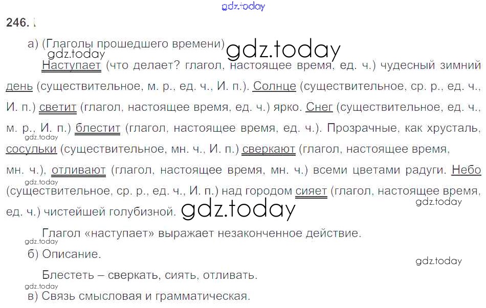 На страницах сайта gdz.today вы найдете учебный и вспомогательный материал, направленный на улучшения знаний школьной программы. ГДЗ - онлайн мир знаний Решение к упражнениям 246 Учебнику по Русскому языку для 3 класса Нечаева, Яковлева Фёдоров УМК 2014