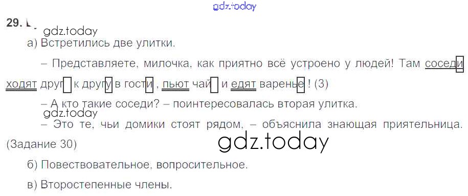На страницах сайта gdz.today вы найдете учебный и вспомогательный материал, направленный на улучшения знаний школьной программы. ГДЗ - онлайн мир знаний Решение к упражнениям 29 Учебнику по Русскому языку для 3 класса Нечаева, Яковлева Фёдоров УМК 2014