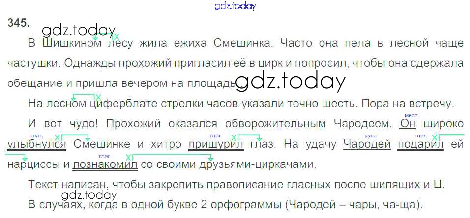 На страницах сайта gdz.today вы найдете учебный и вспомогательный материал, направленный на улучшения знаний школьной программы. ГДЗ - онлайн мир знаний Решение к упражнениям 345 Учебнику по Русскому языку для 3 класса Нечаева, Яковлева Фёдоров УМК 2014
