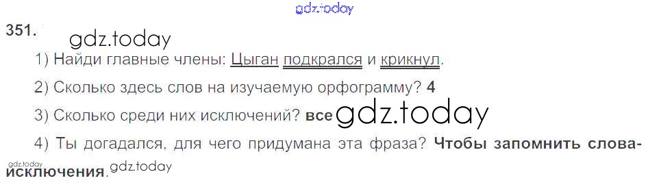 На страницах сайта gdz.today вы найдете учебный и вспомогательный материал, направленный на улучшения знаний школьной программы. ГДЗ - онлайн мир знаний Решение к упражнениям 351 Учебнику по Русскому языку для 3 класса Нечаева, Яковлева Фёдоров УМК 2014