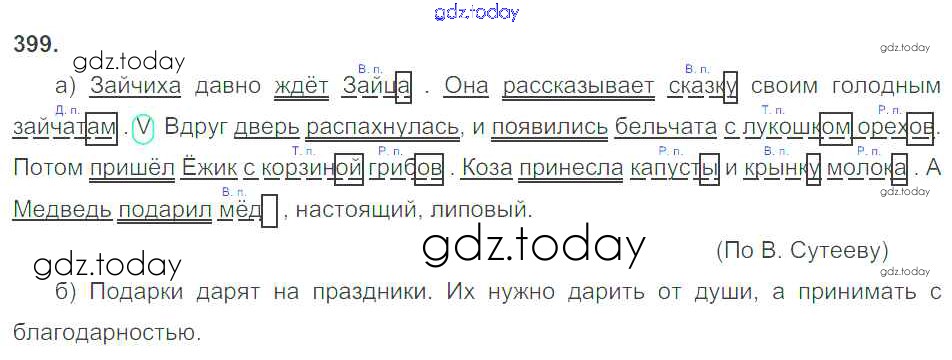 На страницах сайта gdz.today вы найдете учебный и вспомогательный материал, направленный на улучшения знаний школьной программы. ГДЗ - онлайн мир знаний Решение к упражнениям 399 Учебнику по Русскому языку для 3 класса Нечаева, Яковлева Фёдоров УМК 2014