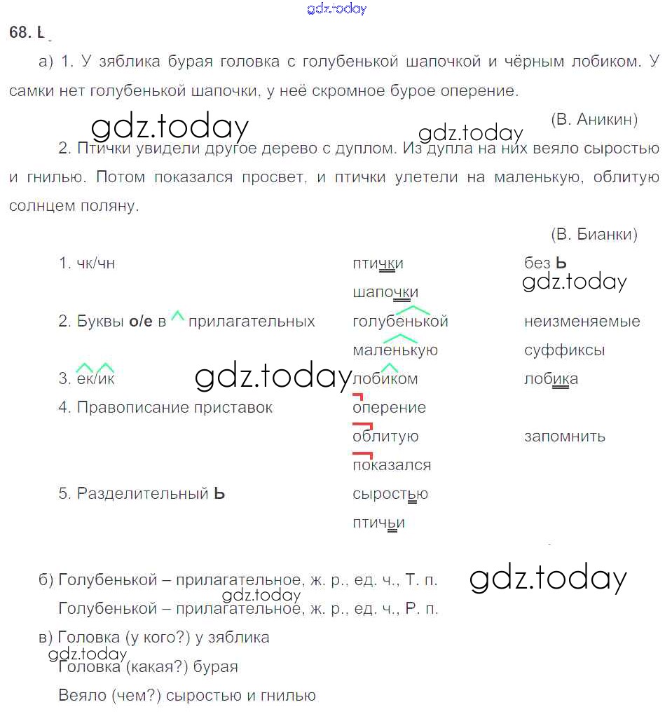 Ответы к Решение к упражнениям 68 Учебнику по Русскому языку для 3 класса Нечаева, Яковлева Фёдоров УМК 2014