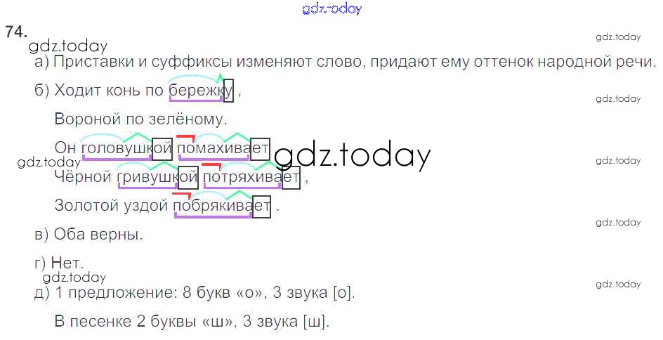 Ответы к Решение к упражнениям 74 Учебнику по Русскому языку для 3 класса Нечаева, Яковлева Фёдоров УМК 2014
