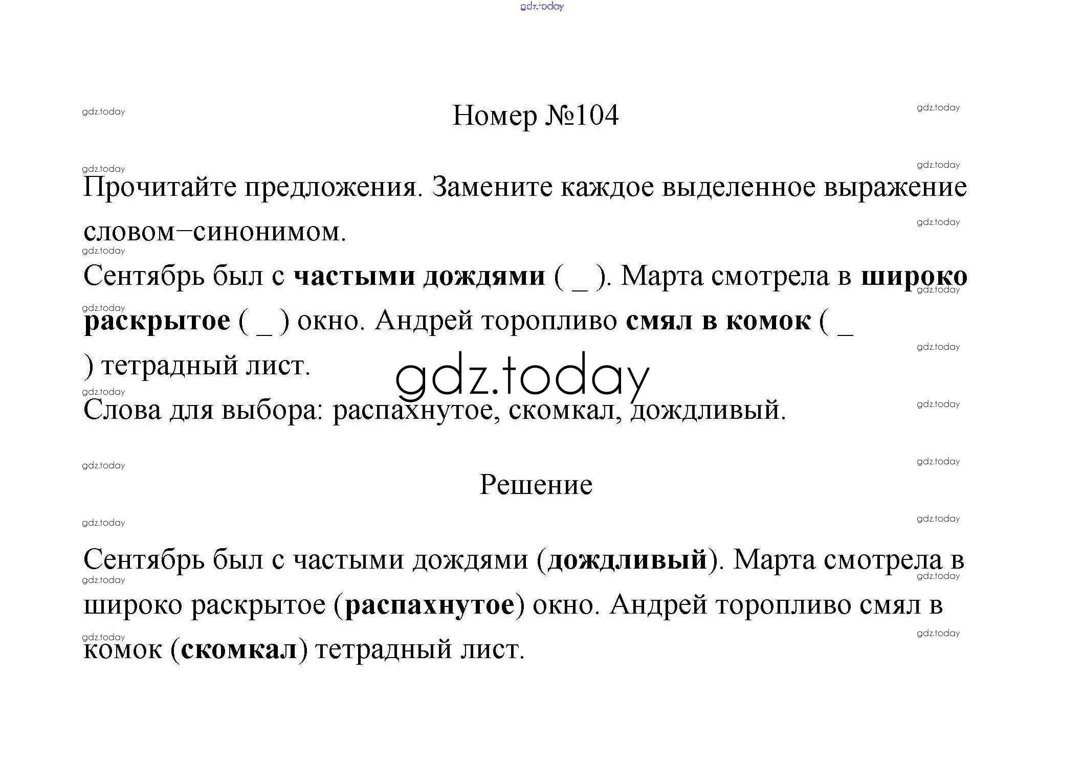 Ответы к Части 1. Решение к заданиям 104 Рабочей тетради по Русскому языку для 3 класса Климанова, Бабушкина Просвещение Перспектива 2018