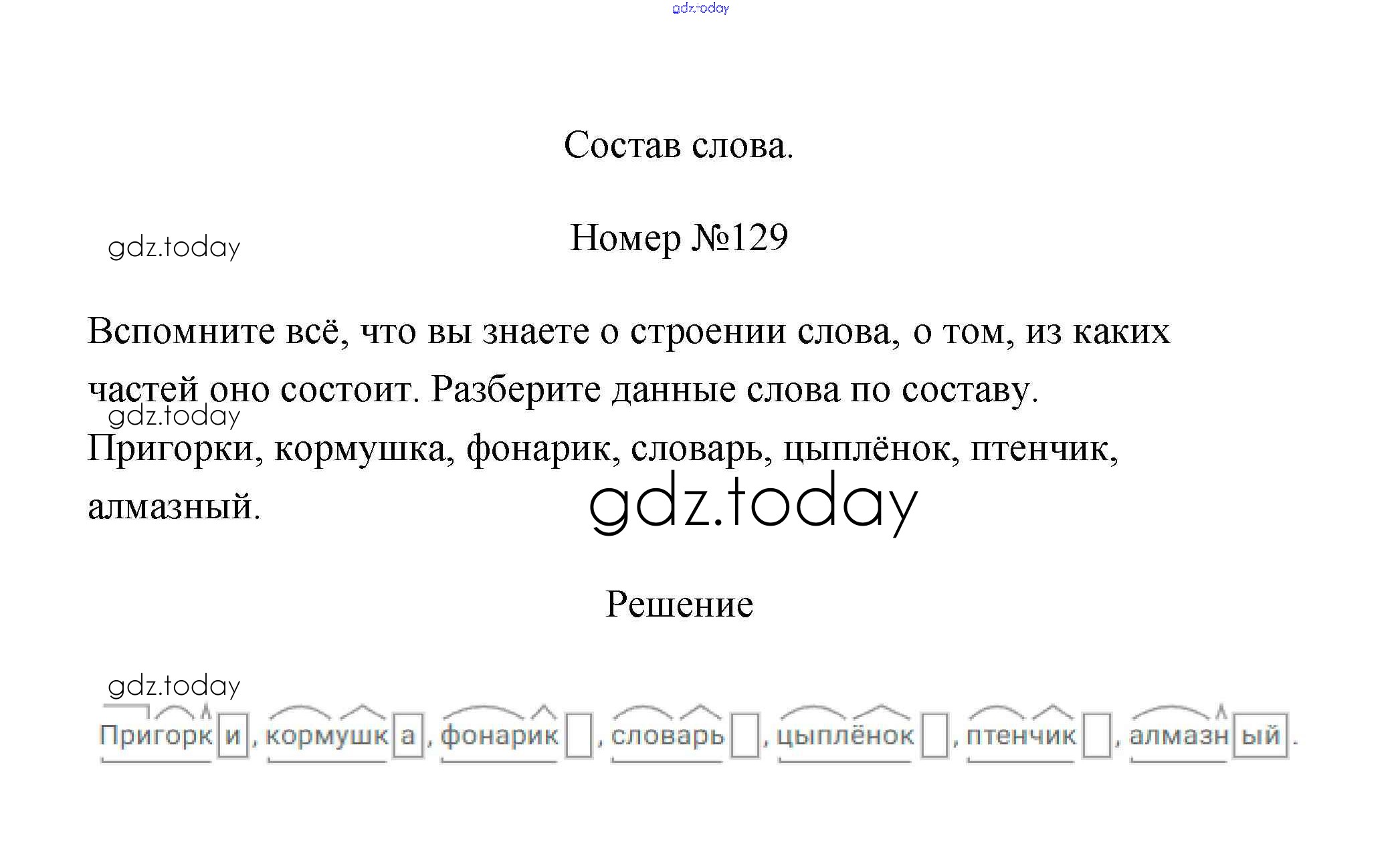 Ответы к Части 1. Решение к заданиям 129 Рабочей тетради по Русскому языку для 3 класса Климанова, Бабушкина Просвещение Перспектива 2018