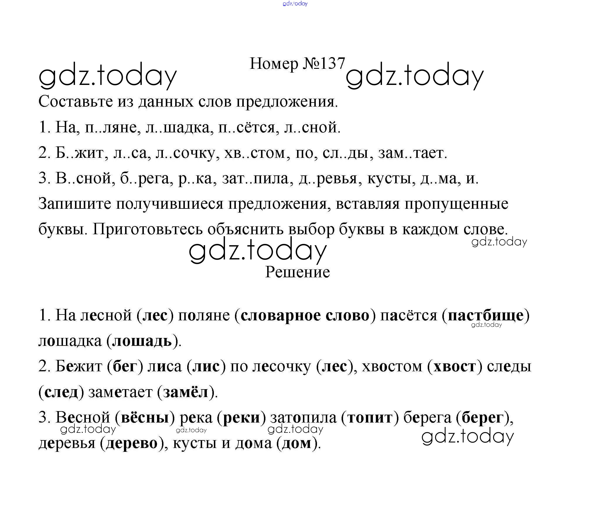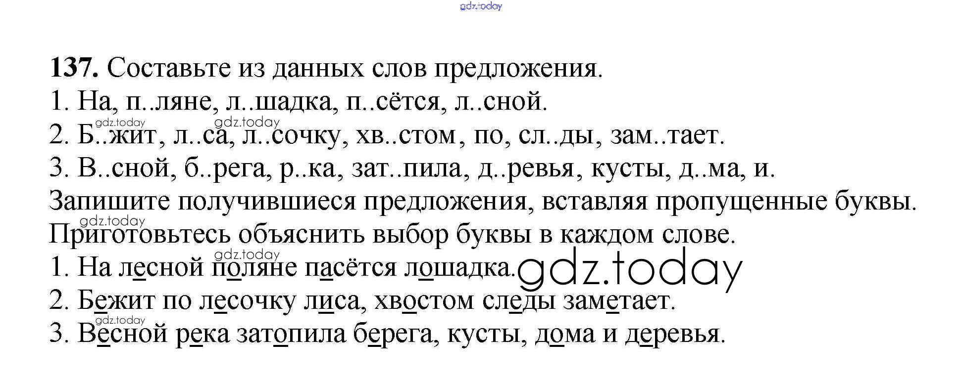 Ответы к Части 1. Решение к заданиям 137 Рабочей тетради по Русскому языку для 3 класса Климанова, Бабушкина Просвещение Перспектива 2018