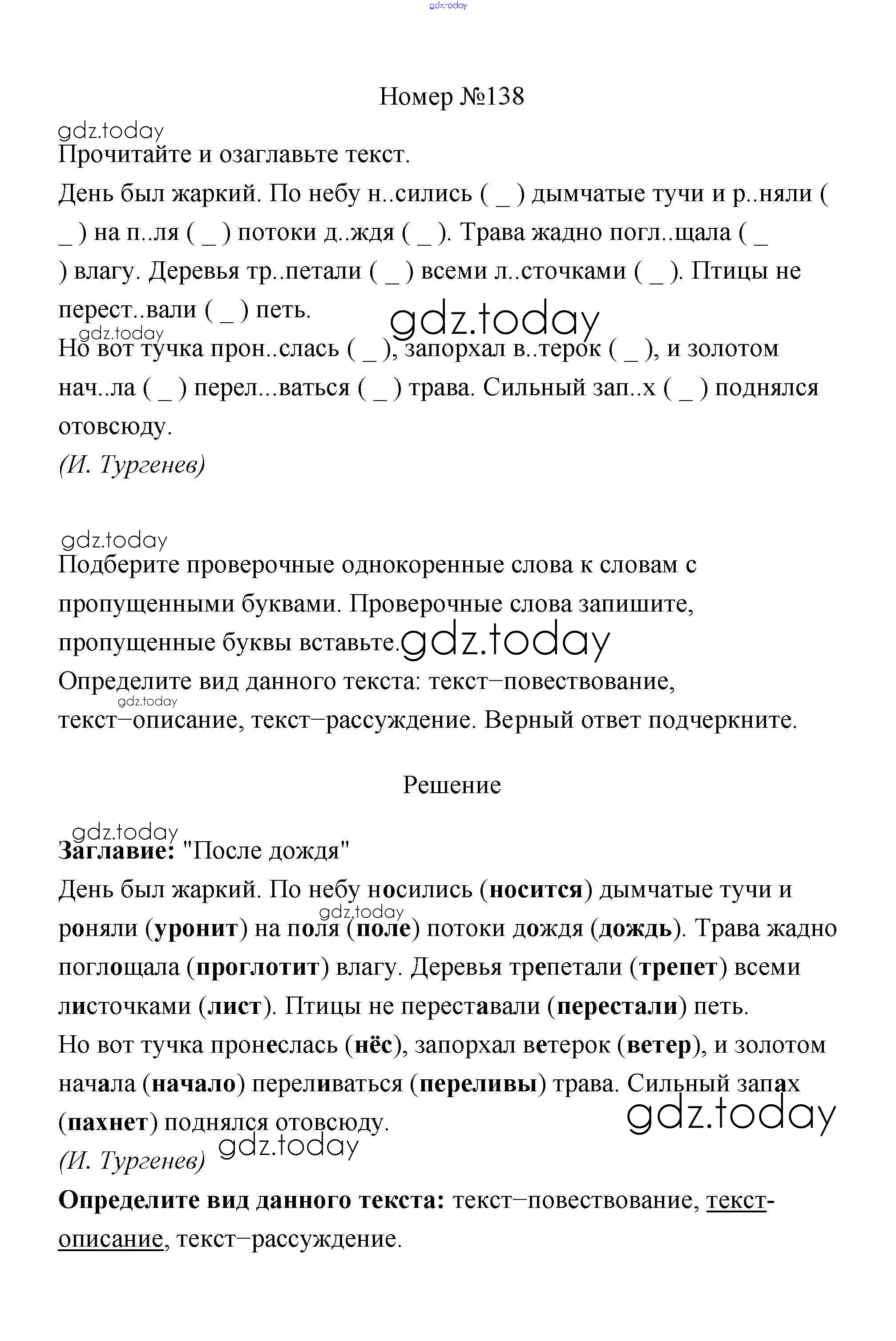 Ответы к Части 1. Решение к заданиям 138 Рабочей тетради по Русскому языку для 3 класса Климанова, Бабушкина Просвещение Перспектива 2018