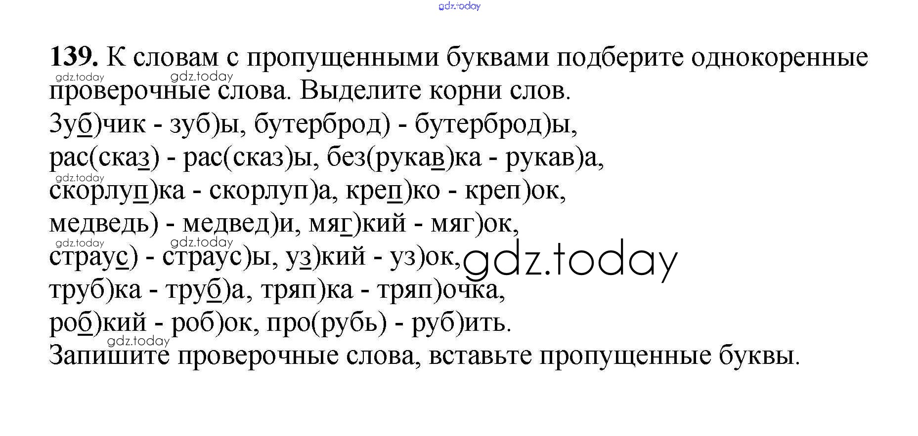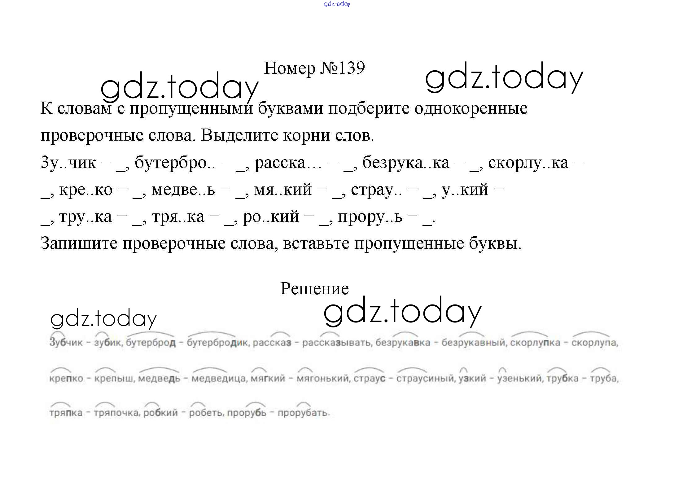 Ответы к Части 1. Решение к заданиям 139 Рабочей тетради по Русскому языку для 3 класса Климанова, Бабушкина Просвещение Перспектива 2018