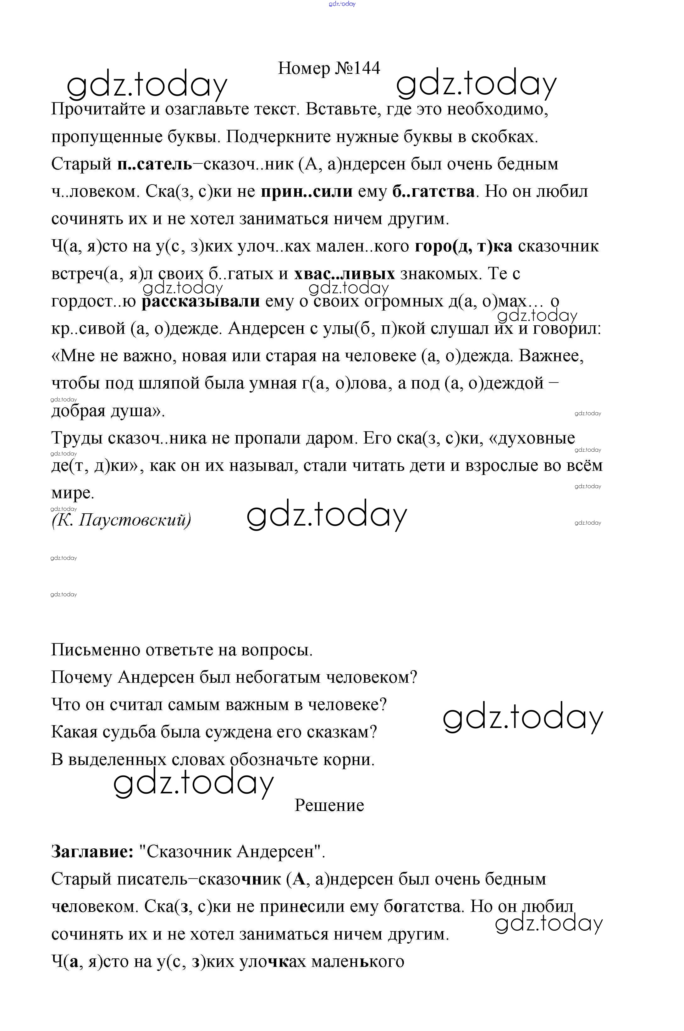 Ответы к Части 1. Решение к заданиям 144 Рабочей тетради по Русскому языку для 3 класса Климанова, Бабушкина Просвещение Перспектива 2018