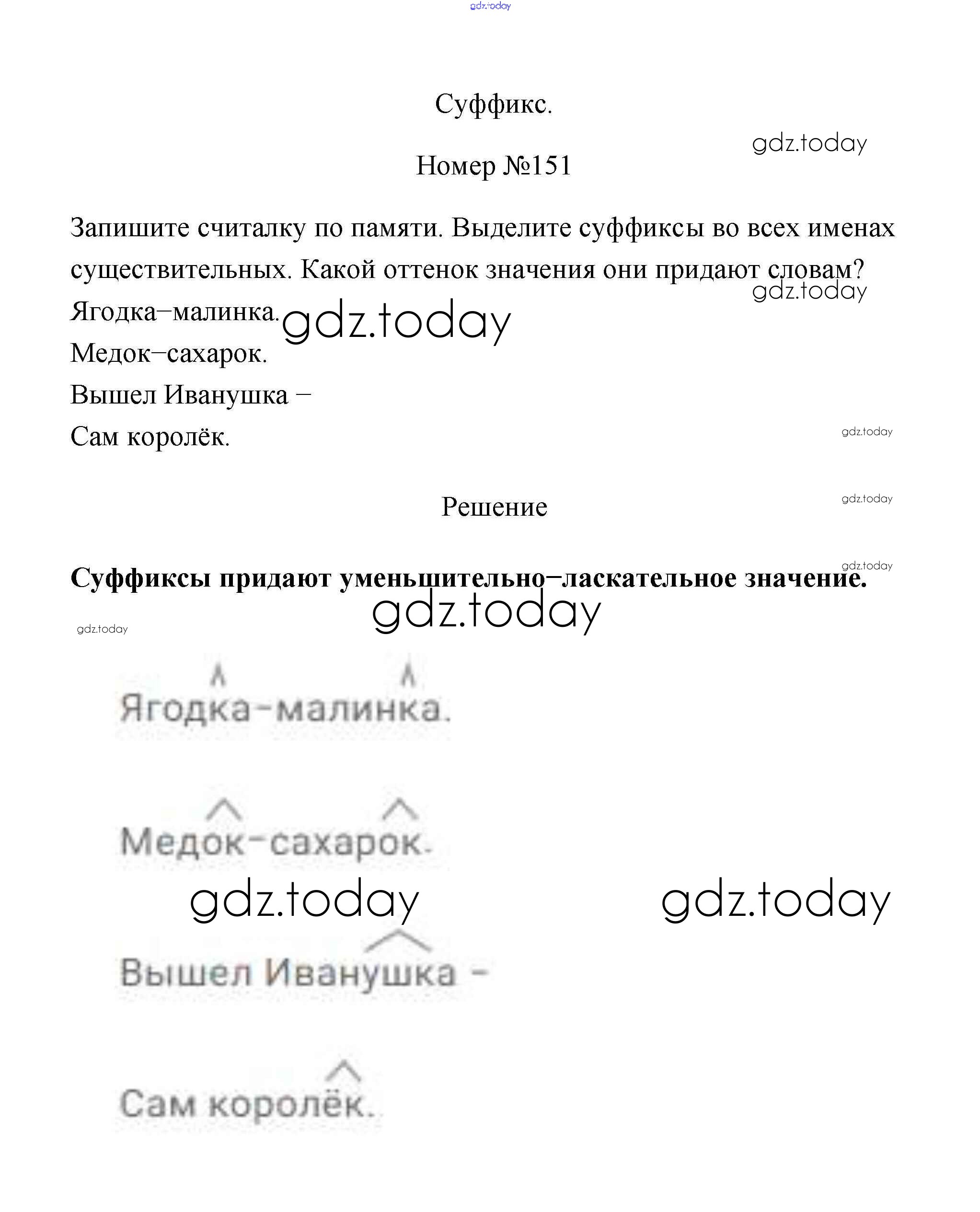 Ответы к Части 1. Решение к заданиям 151 Рабочей тетради по Русскому языку для 3 класса Климанова, Бабушкина Просвещение Перспектива 2018