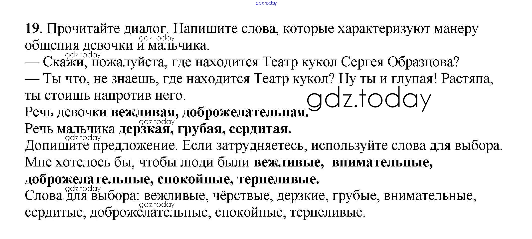 На страницах сайта gdz.today вы найдете учебный и вспомогательный материал, направленный на улучшения знаний школьной программы. ГДЗ - онлайн мир знаний Части 1. Решение к заданиям 19 Рабочей тетради по Русскому языку для 3 класса Климанова, Бабушкина Просвещение Перспектива 2018