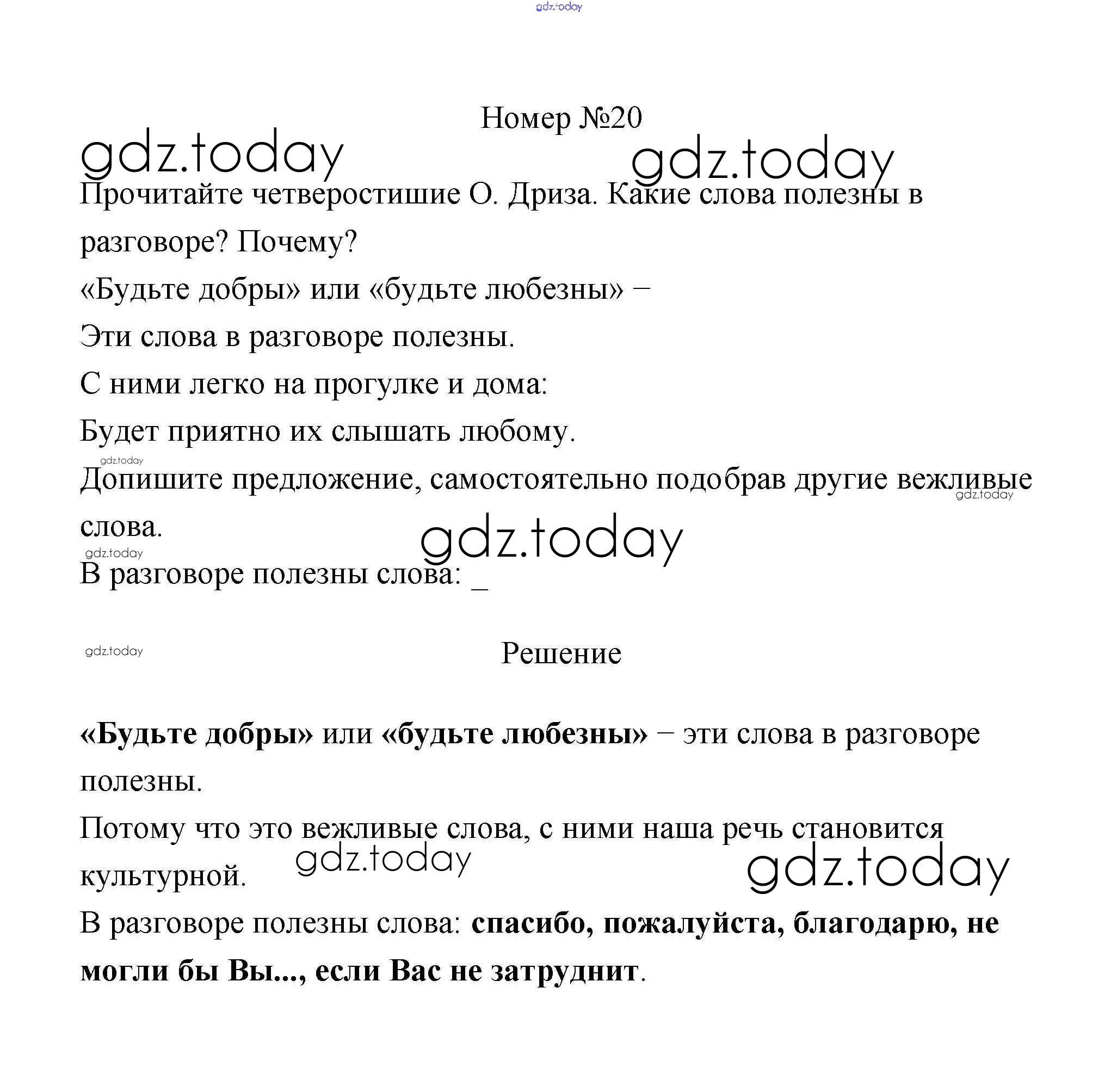 На страницах сайта gdz.today вы найдете учебный и вспомогательный материал, направленный на улучшения знаний школьной программы. ГДЗ - онлайн мир знаний Части 1. Решение к заданиям 20 Рабочей тетради по Русскому языку для 3 класса Климанова, Бабушкина Просвещение Перспектива 2018