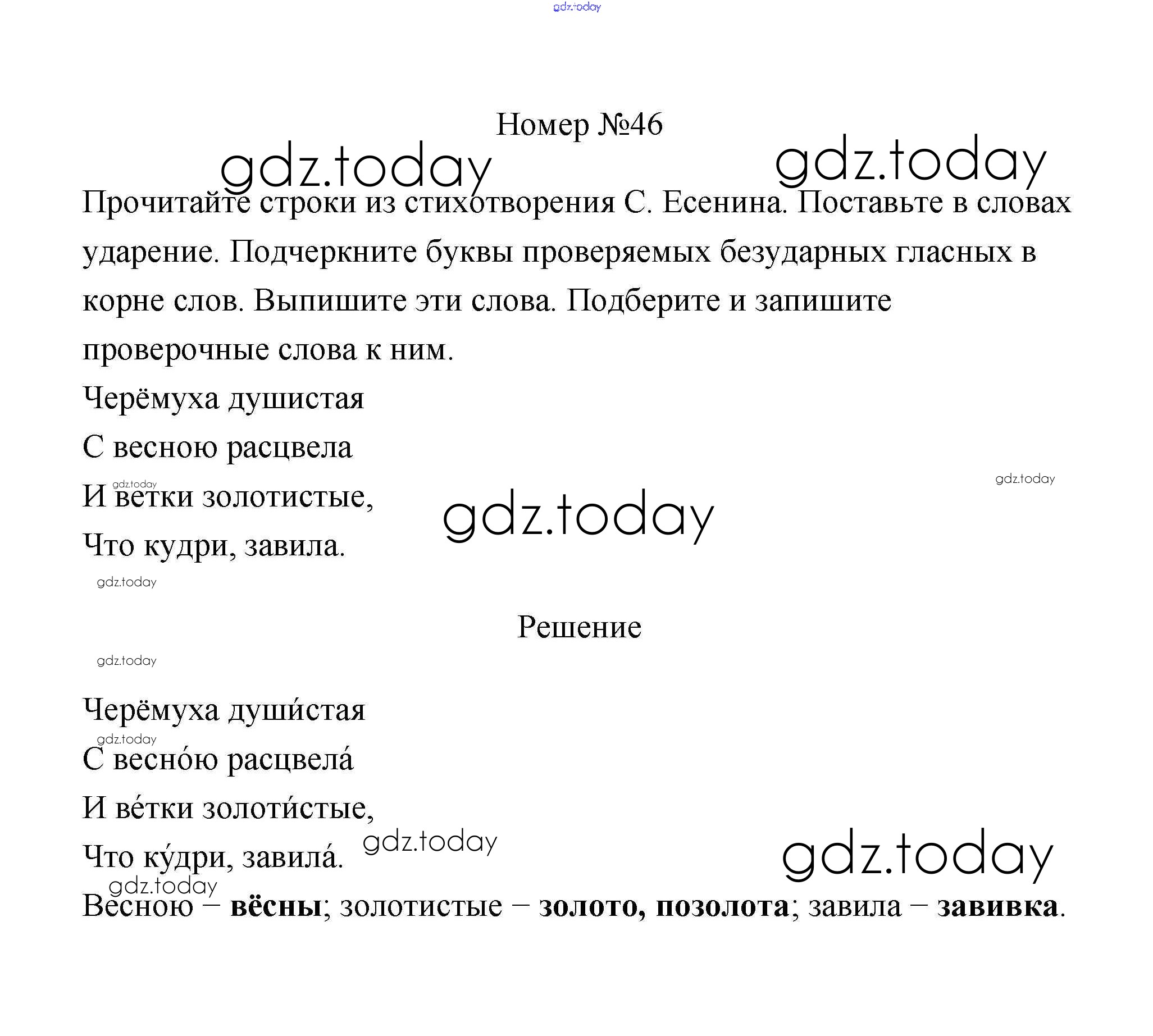 Ответы к Части 1. Решение к заданиям 46 Рабочей тетради по Русскому языку для 3 класса Климанова, Бабушкина Просвещение Перспектива 2018