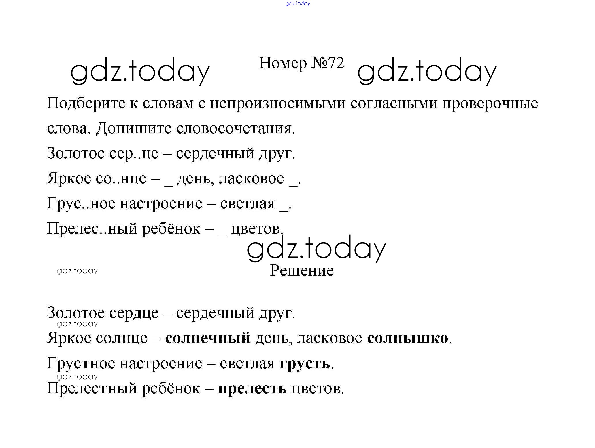 Ответы к Части 1. Решение к заданиям 72 Рабочей тетради по Русскому языку для 3 класса Климанова, Бабушкина Просвещение Перспектива 2018