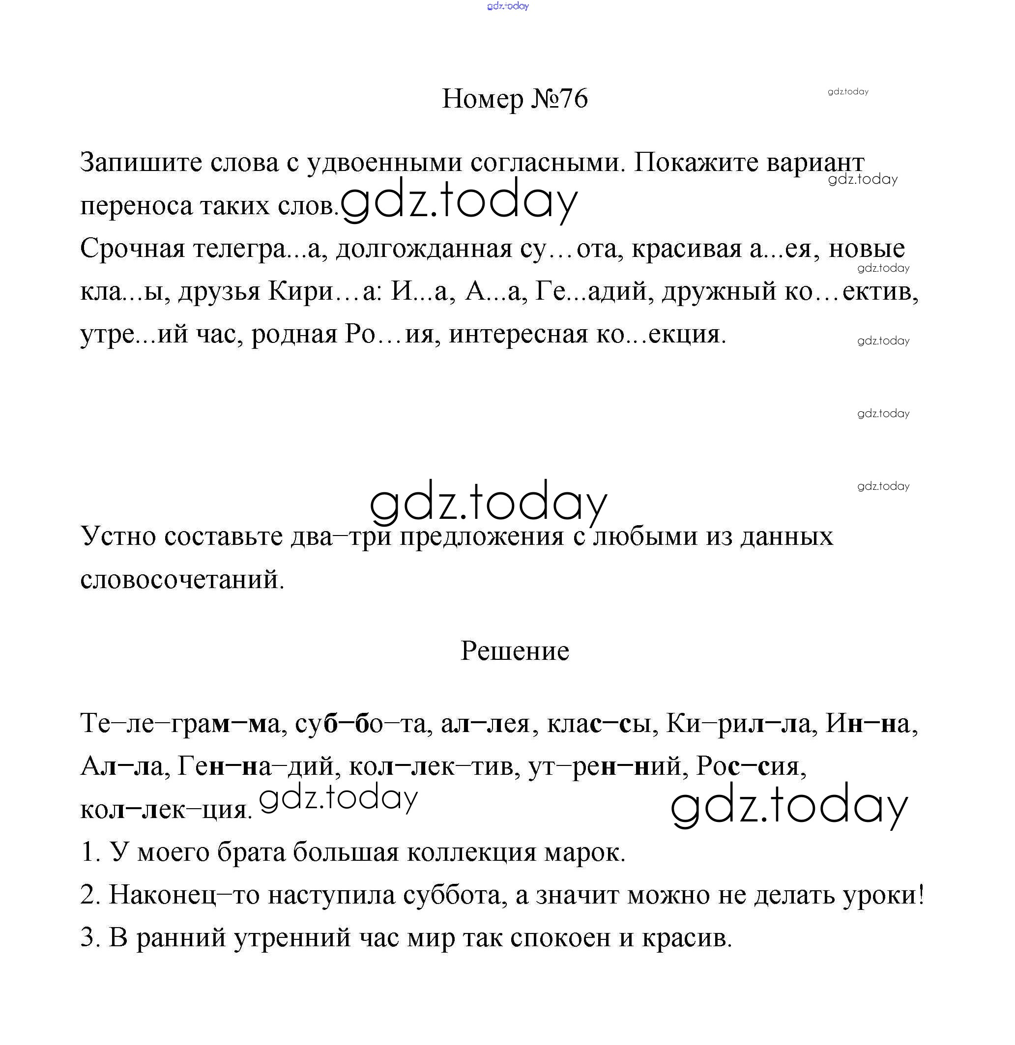 Ответы к Части 1. Решение к заданиям 76 Рабочей тетради по Русскому языку для 3 класса Климанова, Бабушкина Просвещение Перспектива 2018