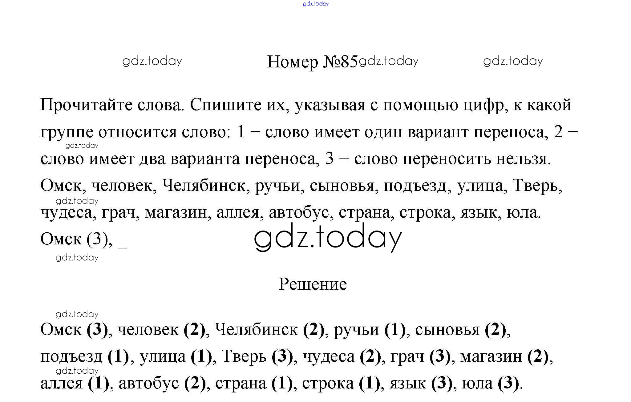 Ответы к Части 1. Решение к заданиям 85 Рабочей тетради по Русскому языку для 3 класса Климанова, Бабушкина Просвещение Перспектива 2018