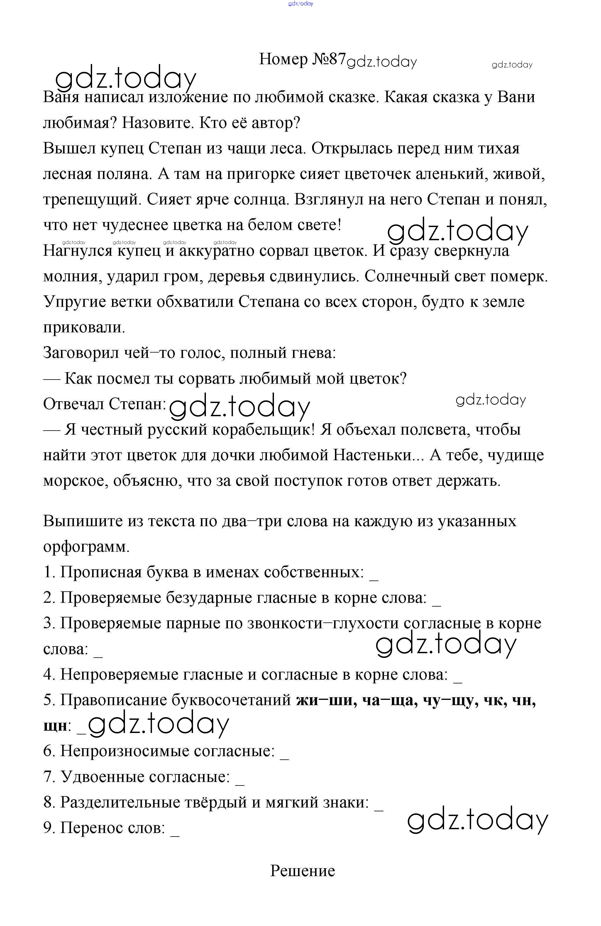 Ответы к Части 1. Решение к заданиям 87 Рабочей тетради по Русскому языку для 3 класса Климанова, Бабушкина Просвещение Перспектива 2018