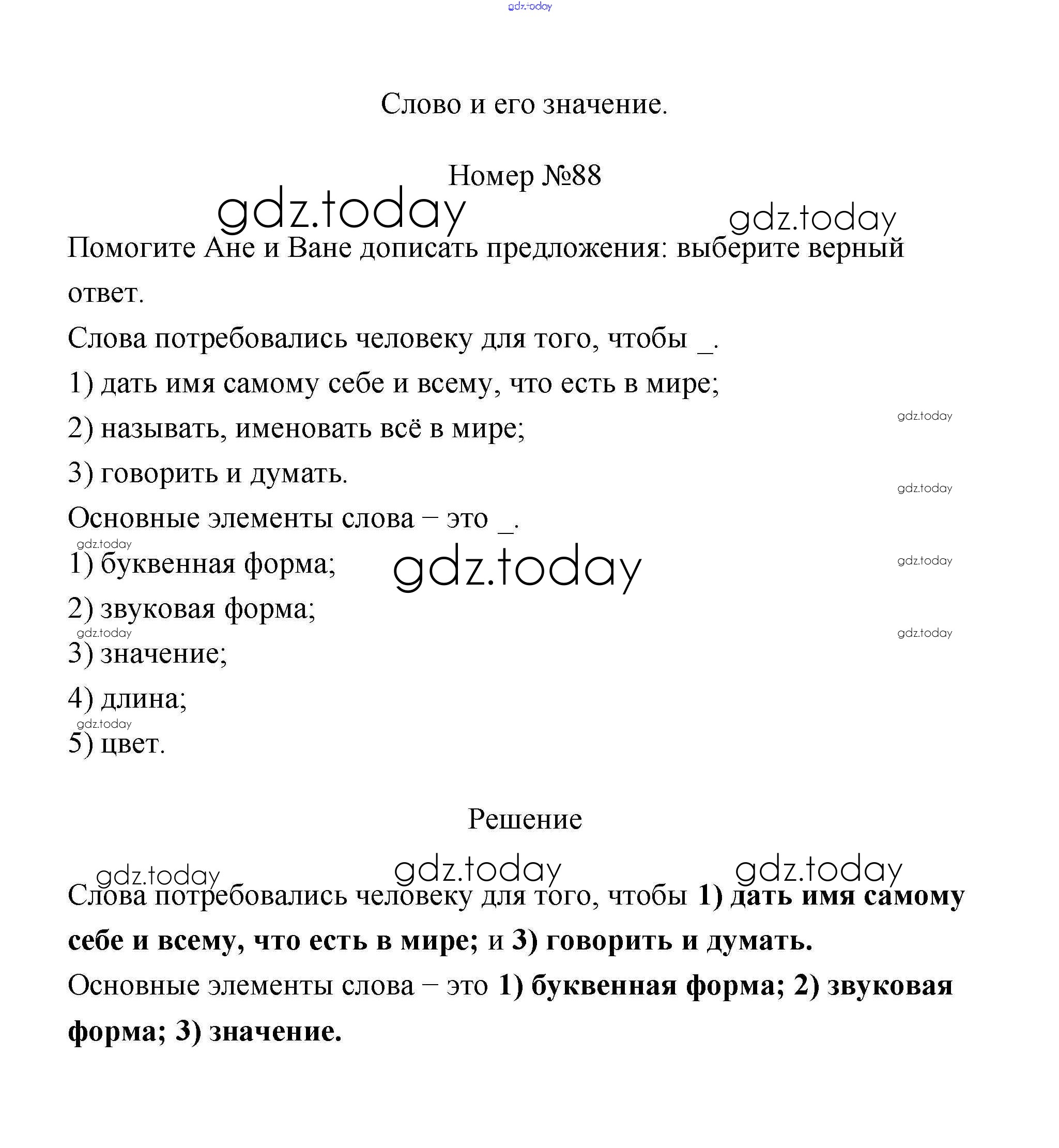 Ответы к Части 1. Решение к заданиям 88 Рабочей тетради по Русскому языку для 3 класса Климанова, Бабушкина Просвещение Перспектива 2018