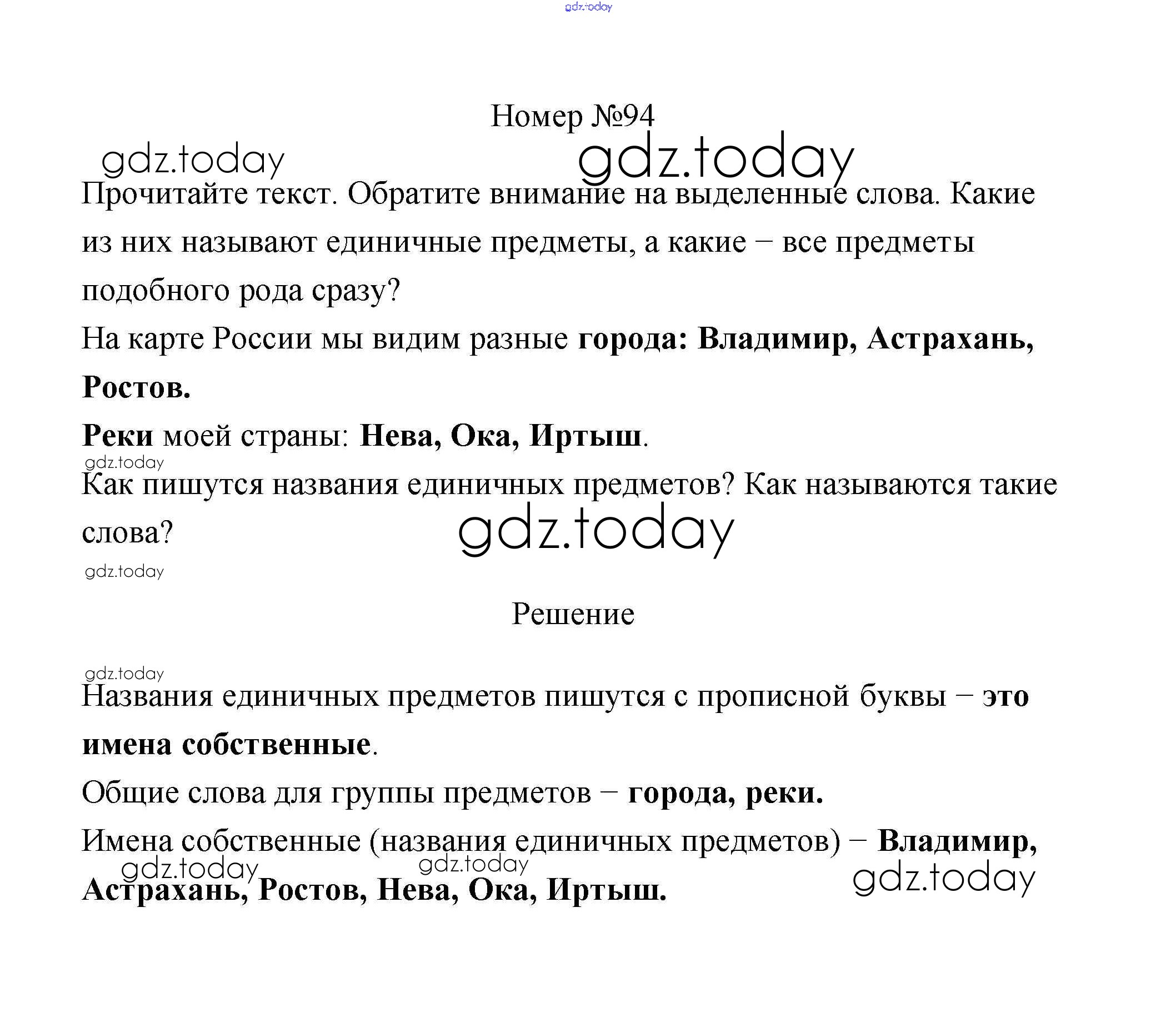 Ответы к Части 1. Решение к заданиям 94 Рабочей тетради по Русскому языку для 3 класса Климанова, Бабушкина Просвещение Перспектива 2018