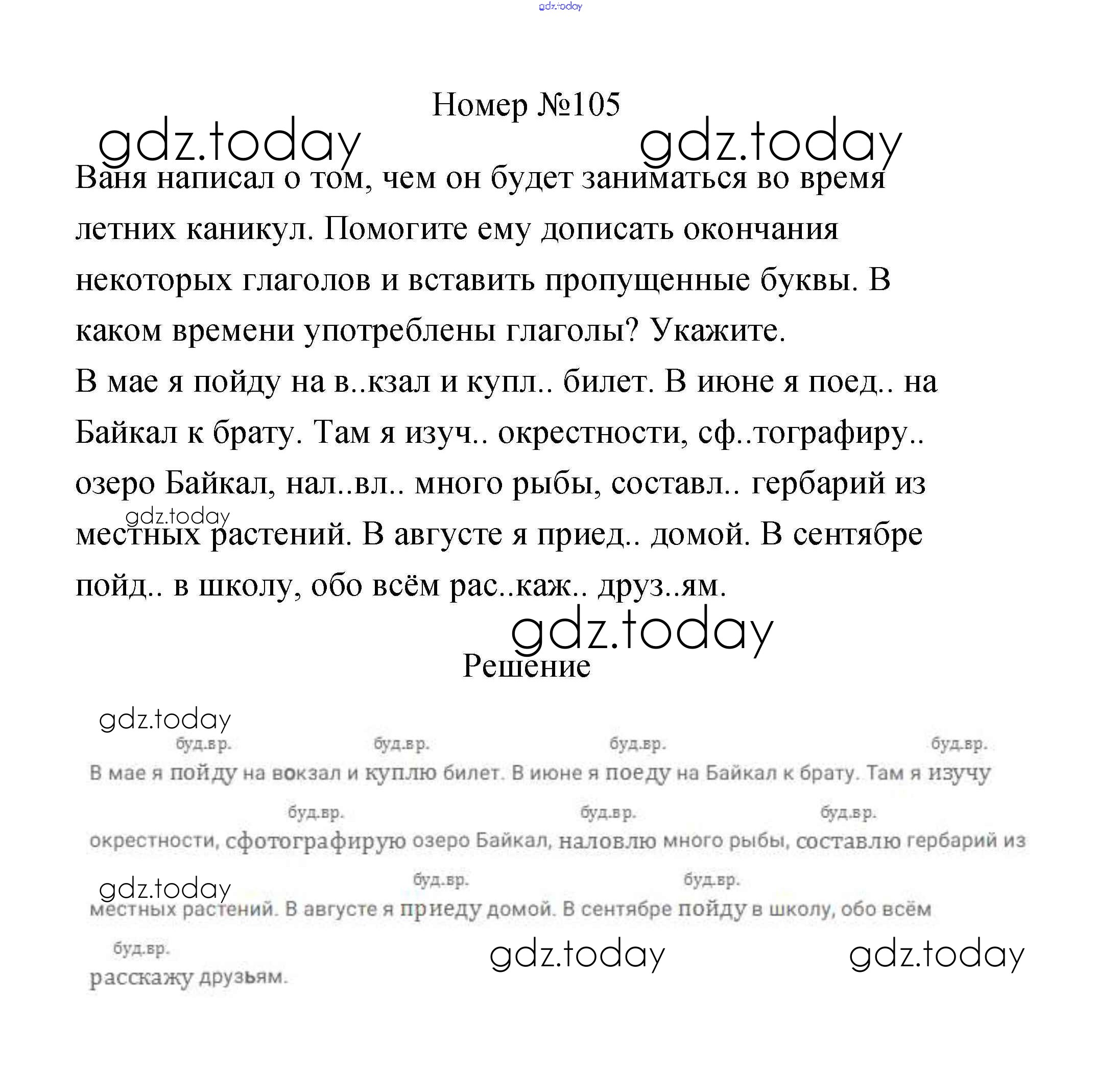 На страницах сайта gdz.today вы найдете учебный и вспомогательный материал, направленный на улучшения знаний школьной программы. ГДЗ - онлайн мир знаний Часть 2. Решение к заданиям 105 Рабочей тетради по Русскому языку для 3 класса Климанова, Бабушкина Просвещение Перспектива 2018