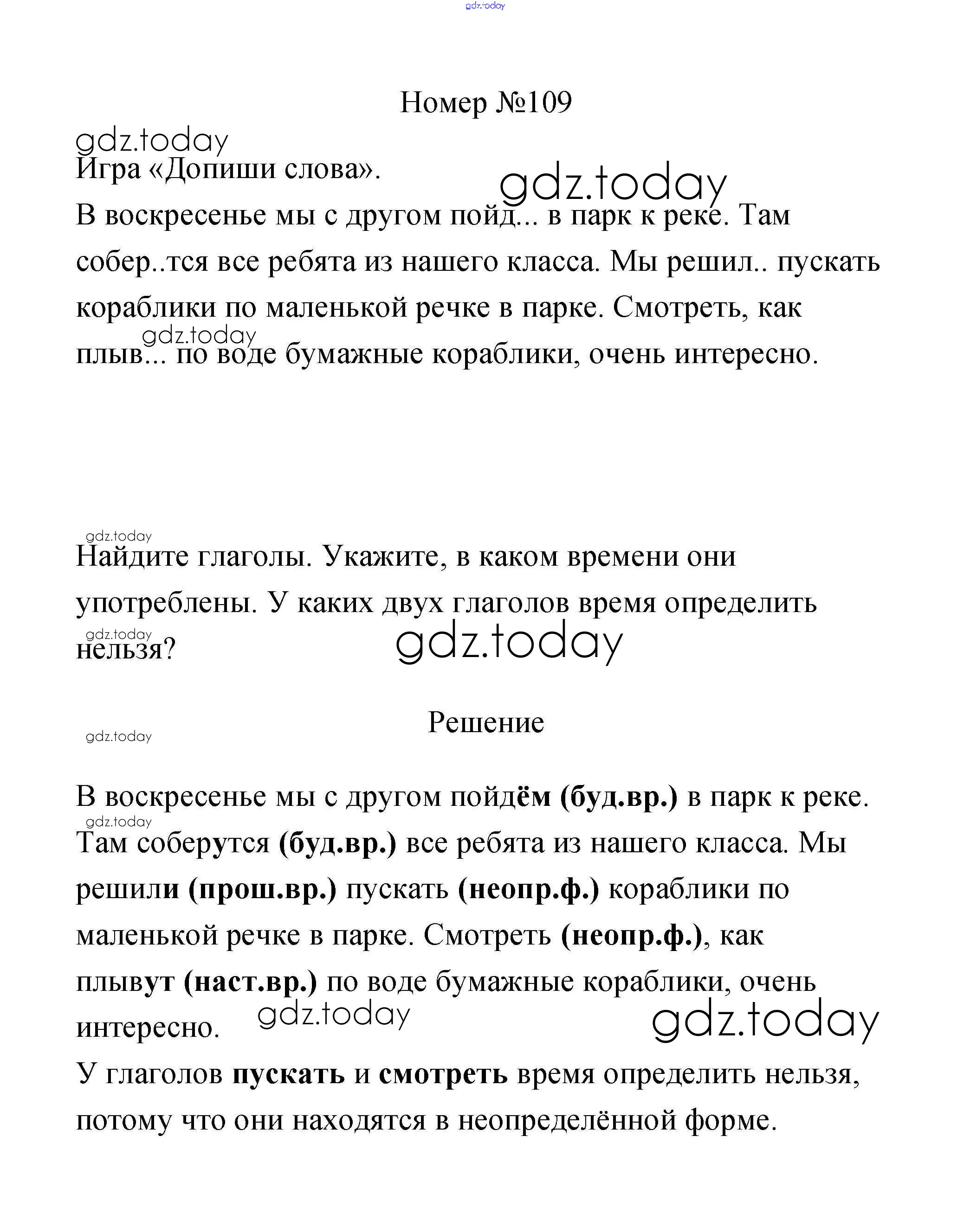 Ответы к Часть 2. Решение к заданиям 109 Рабочей тетради по Русскому языку для 3 класса Климанова, Бабушкина Просвещение Перспектива 2018