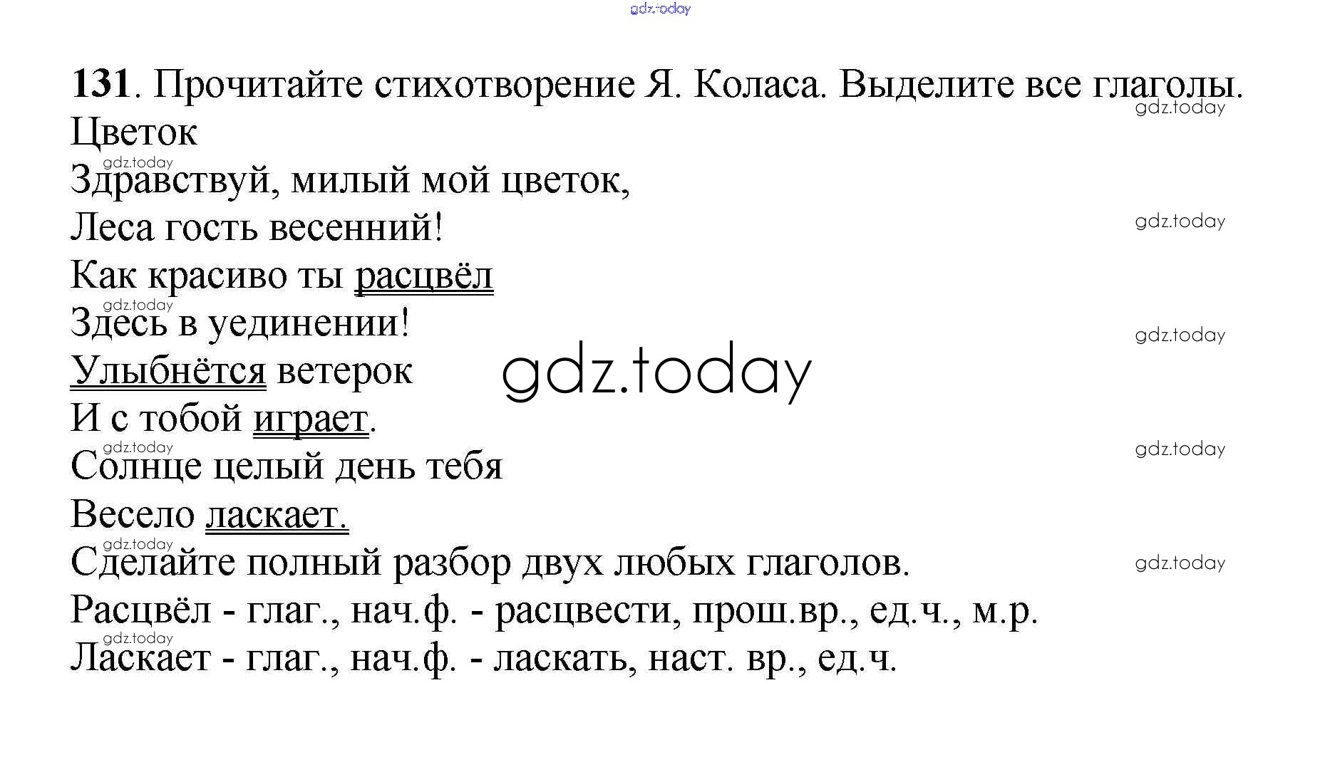 На страницах сайта gdz.today вы найдете учебный и вспомогательный материал, направленный на улучшения знаний школьной программы. ГДЗ - онлайн мир знаний Часть 2. Решение к заданиям 131 Рабочей тетради по Русскому языку для 3 класса Климанова, Бабушкина Просвещение Перспектива 2018