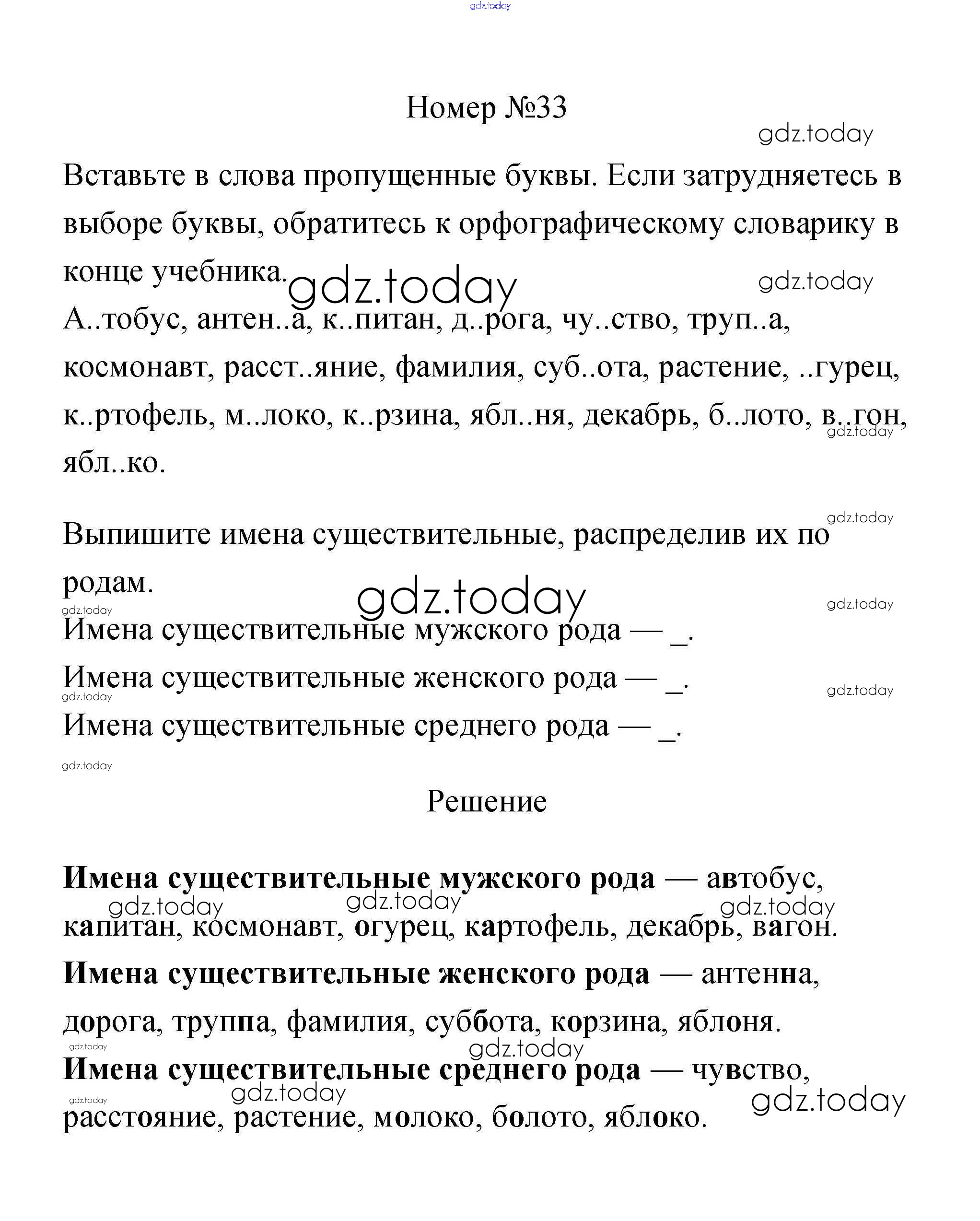 Ответы к Часть 2. Решение к заданиям 33 Рабочей тетради по Русскому языку для 3 класса Климанова, Бабушкина Просвещение Перспектива 2018