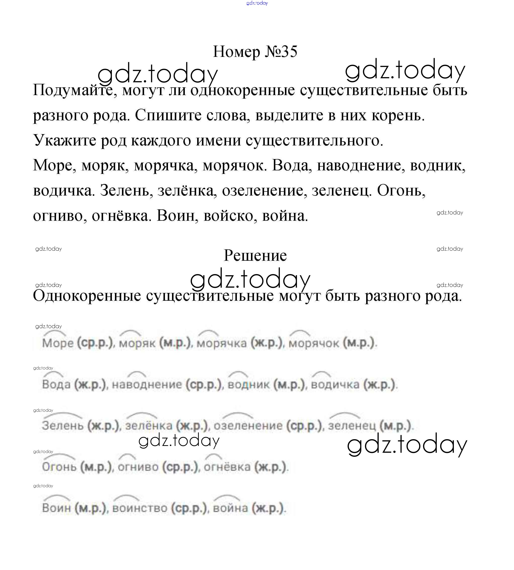 Ответы к Часть 2. Решение к заданиям 35 Рабочей тетради по Русскому языку для 3 класса Климанова, Бабушкина Просвещение Перспектива 2018
