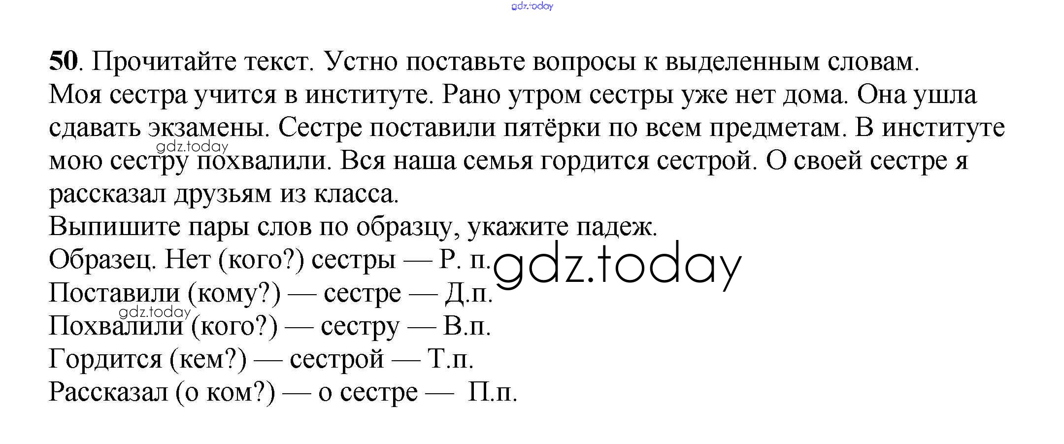 На страницах сайта gdz.today вы найдете учебный и вспомогательный материал, направленный на улучшения знаний школьной программы. ГДЗ - онлайн мир знаний Часть 2. Решение к заданиям 50 Рабочей тетради по Русскому языку для 3 класса Климанова, Бабушкина Просвещение Перспектива 2018