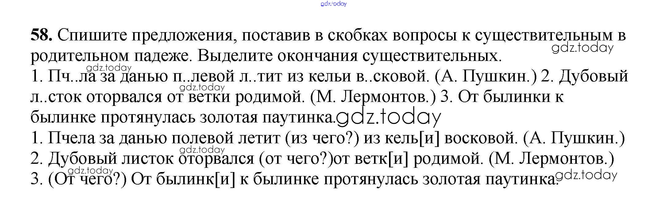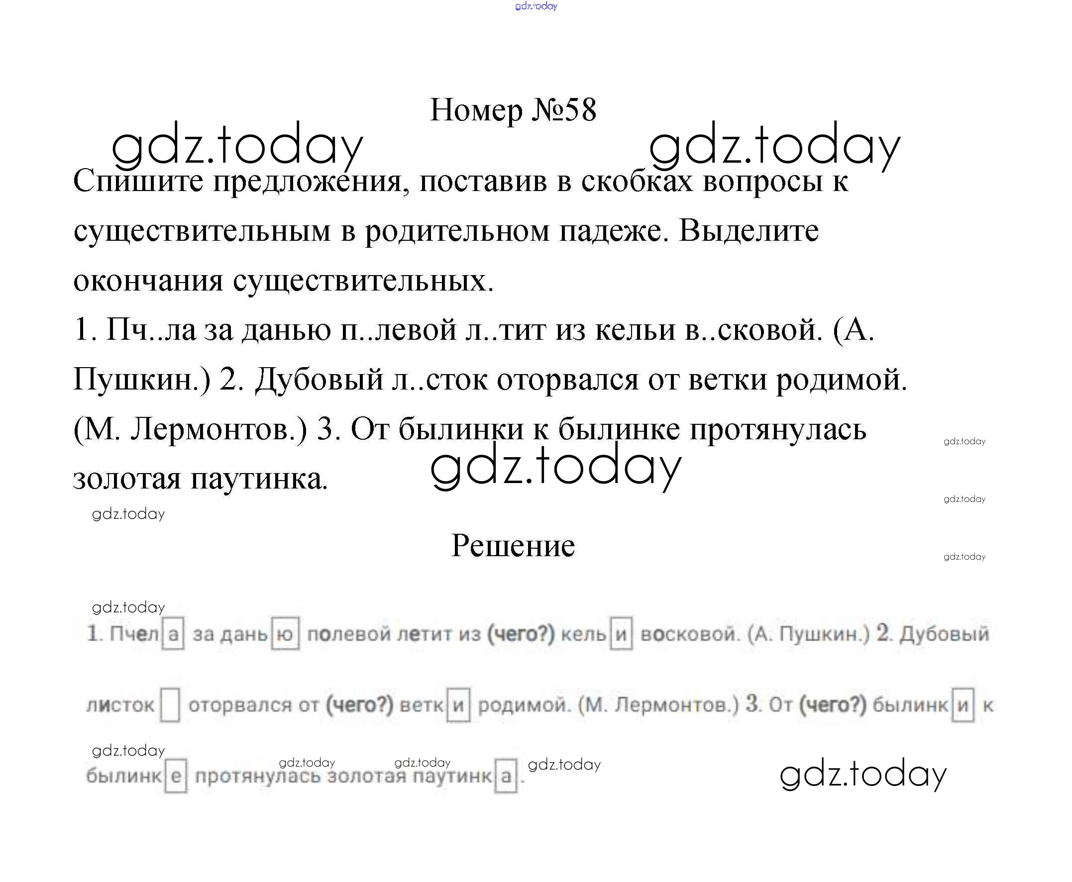 Ответы к Часть 2. Решение к заданиям 58 Рабочей тетради по Русскому языку для 3 класса Климанова, Бабушкина Просвещение Перспектива 2018