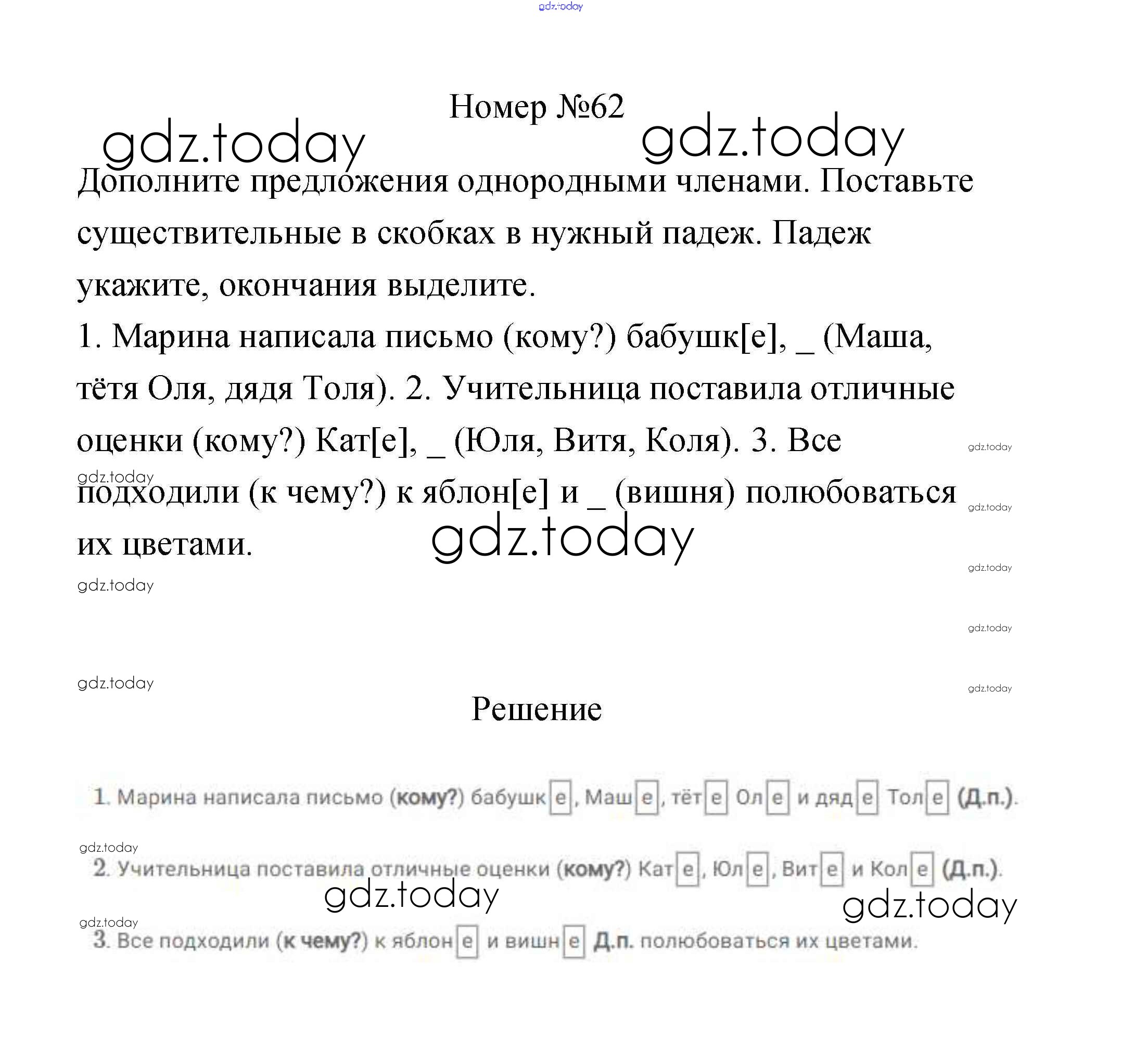 Ответы к Часть 2. Решение к заданиям 62 Рабочей тетради по Русскому языку для 3 класса Климанова, Бабушкина Просвещение Перспектива 2018