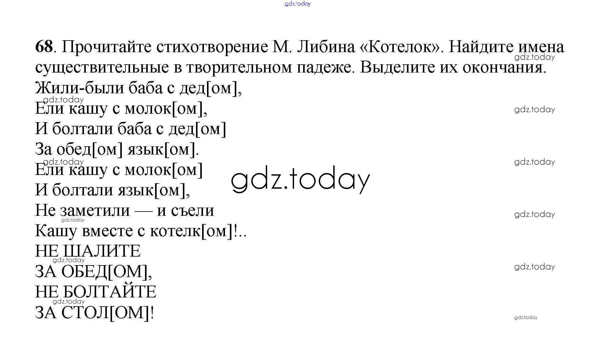 На страницах сайта gdz.today вы найдете учебный и вспомогательный материал, направленный на улучшения знаний школьной программы. ГДЗ - онлайн мир знаний Часть 2. Решение к заданиям 68 Рабочей тетради по Русскому языку для 3 класса Климанова, Бабушкина Просвещение Перспектива 2018