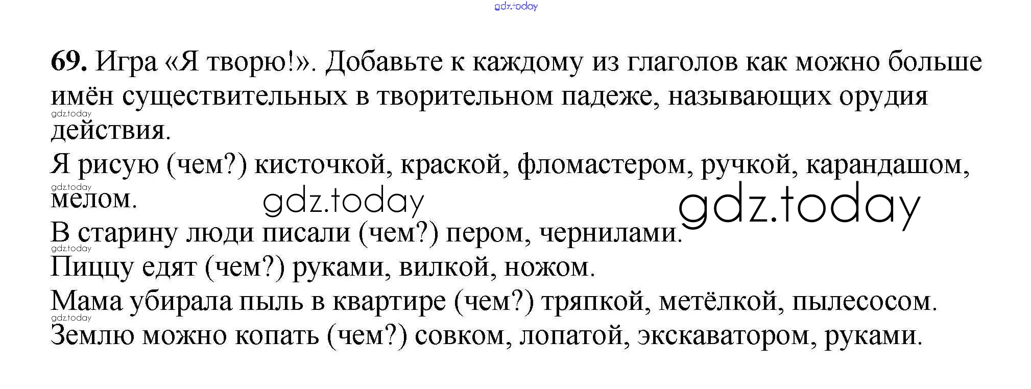 На страницах сайта gdz.today вы найдете учебный и вспомогательный материал, направленный на улучшения знаний школьной программы. ГДЗ - онлайн мир знаний Часть 2. Решение к заданиям 69 Рабочей тетради по Русскому языку для 3 класса Климанова, Бабушкина Просвещение Перспектива 2018