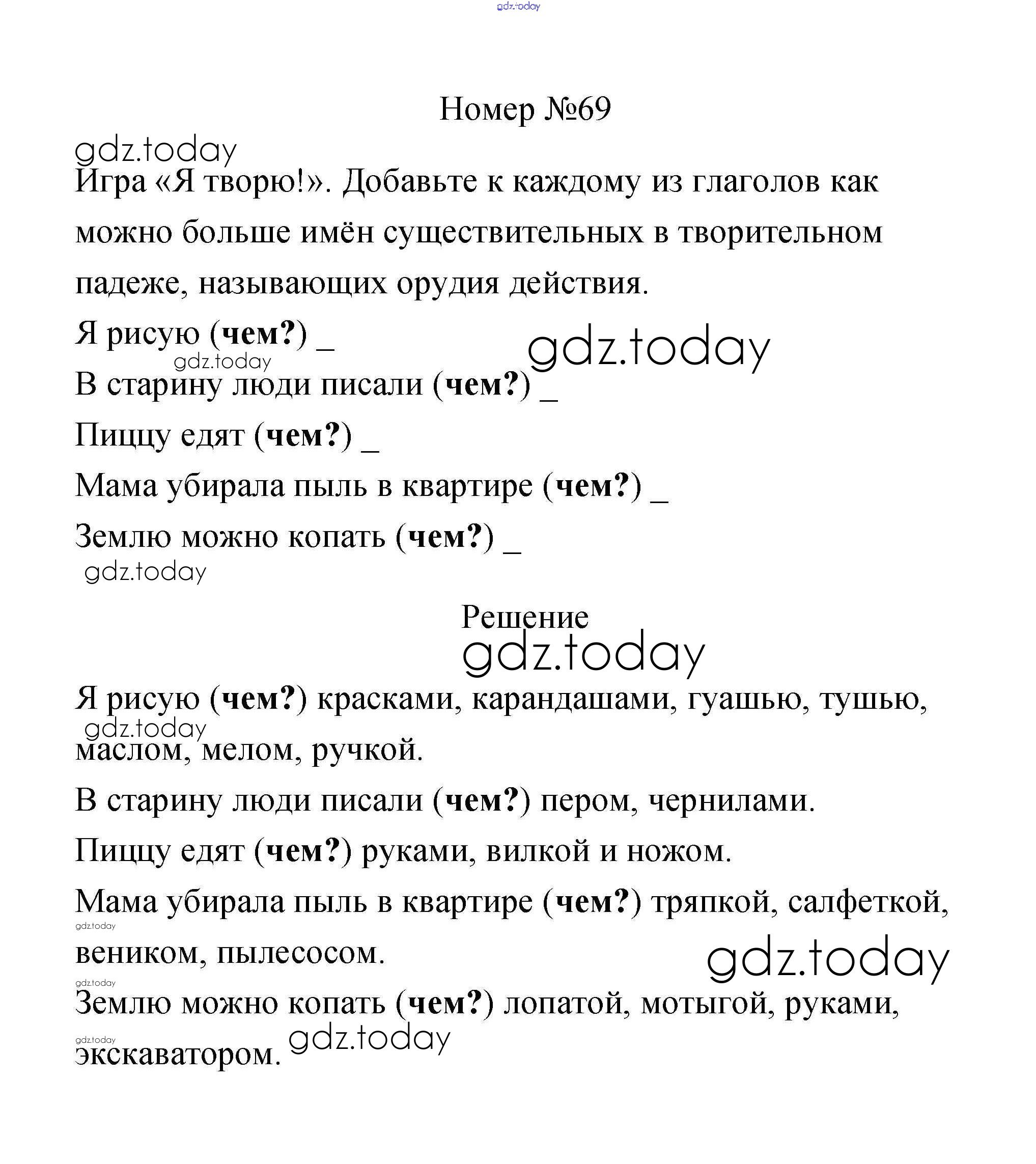 Ответы к Часть 2. Решение к заданиям 69 Рабочей тетради по Русскому языку для 3 класса Климанова, Бабушкина Просвещение Перспектива 2018