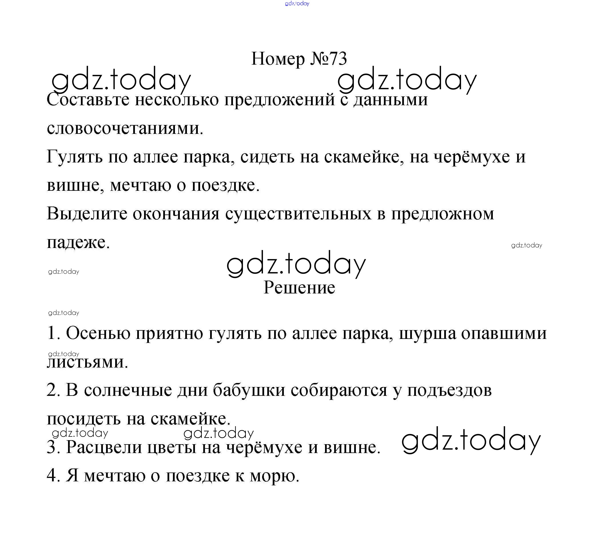 Ответы к Часть 2. Решение к заданиям 73 Рабочей тетради по Русскому языку для 3 класса Климанова, Бабушкина Просвещение Перспектива 2018