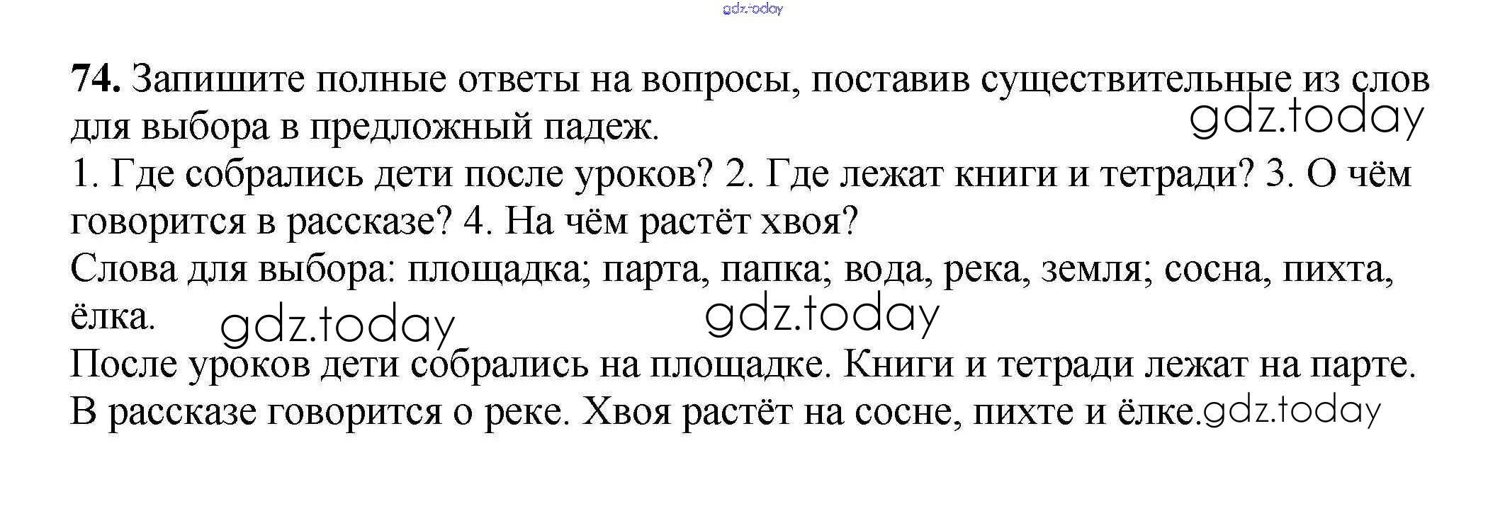 На страницах сайта gdz.today вы найдете учебный и вспомогательный материал, направленный на улучшения знаний школьной программы. ГДЗ - онлайн мир знаний Часть 2. Решение к заданиям 74 Рабочей тетради по Русскому языку для 3 класса Климанова, Бабушкина Просвещение Перспектива 2018