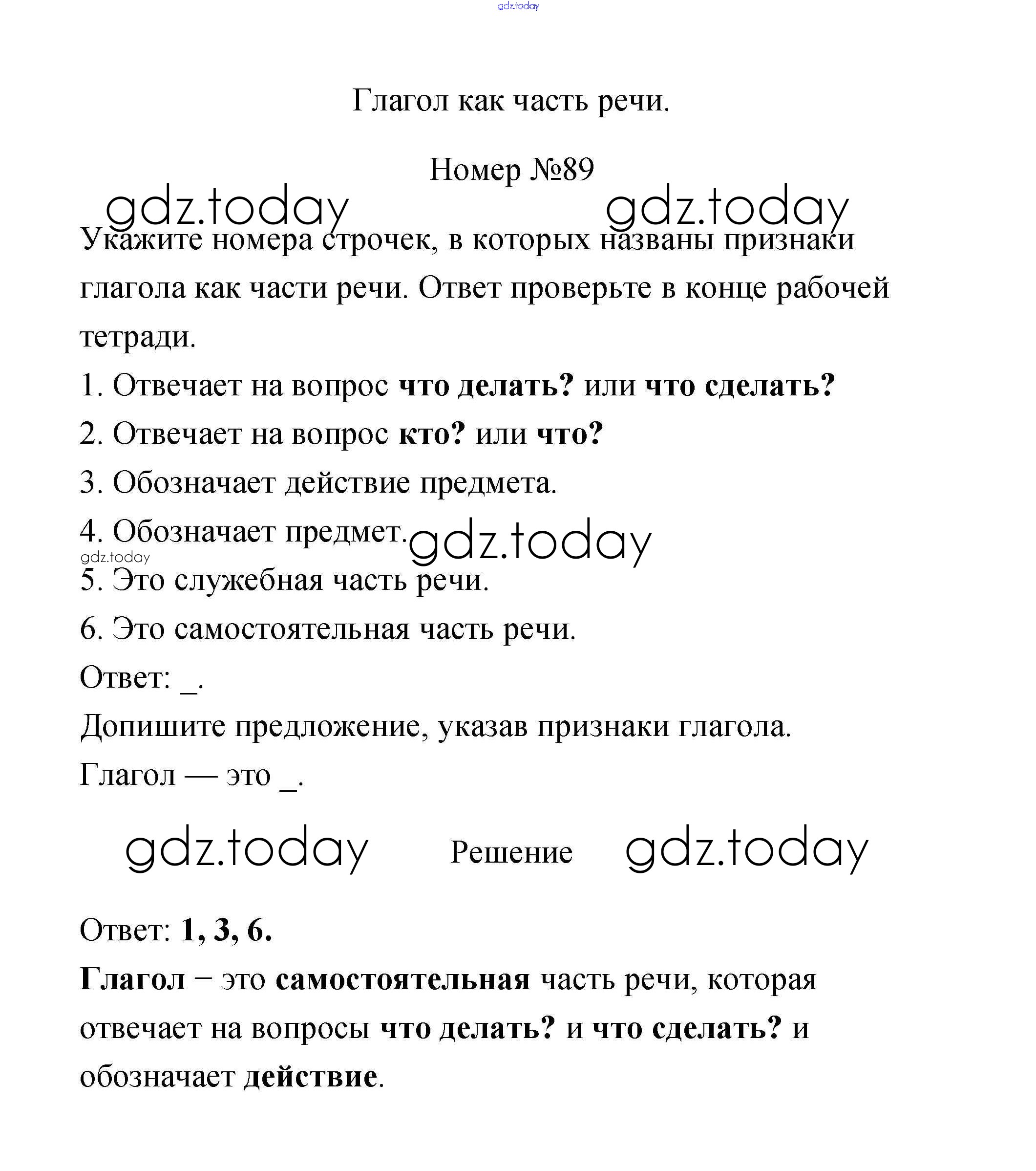 На страницах сайта gdz.today вы найдете учебный и вспомогательный материал, направленный на улучшения знаний школьной программы. ГДЗ - онлайн мир знаний Часть 2. Решение к заданиям 89 Рабочей тетради по Русскому языку для 3 класса Климанова, Бабушкина Просвещение Перспектива 2018