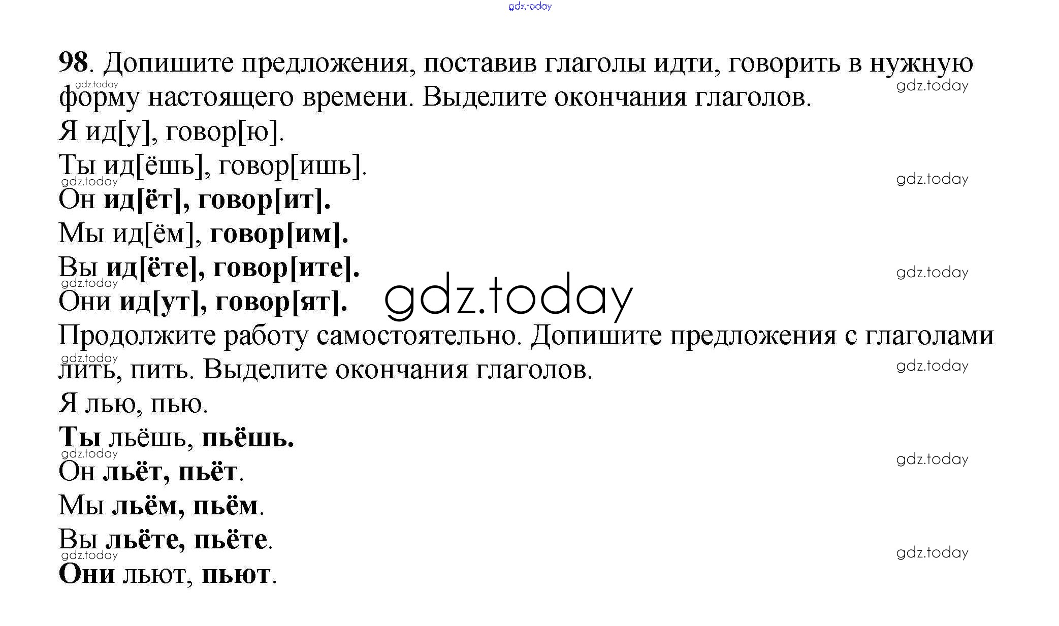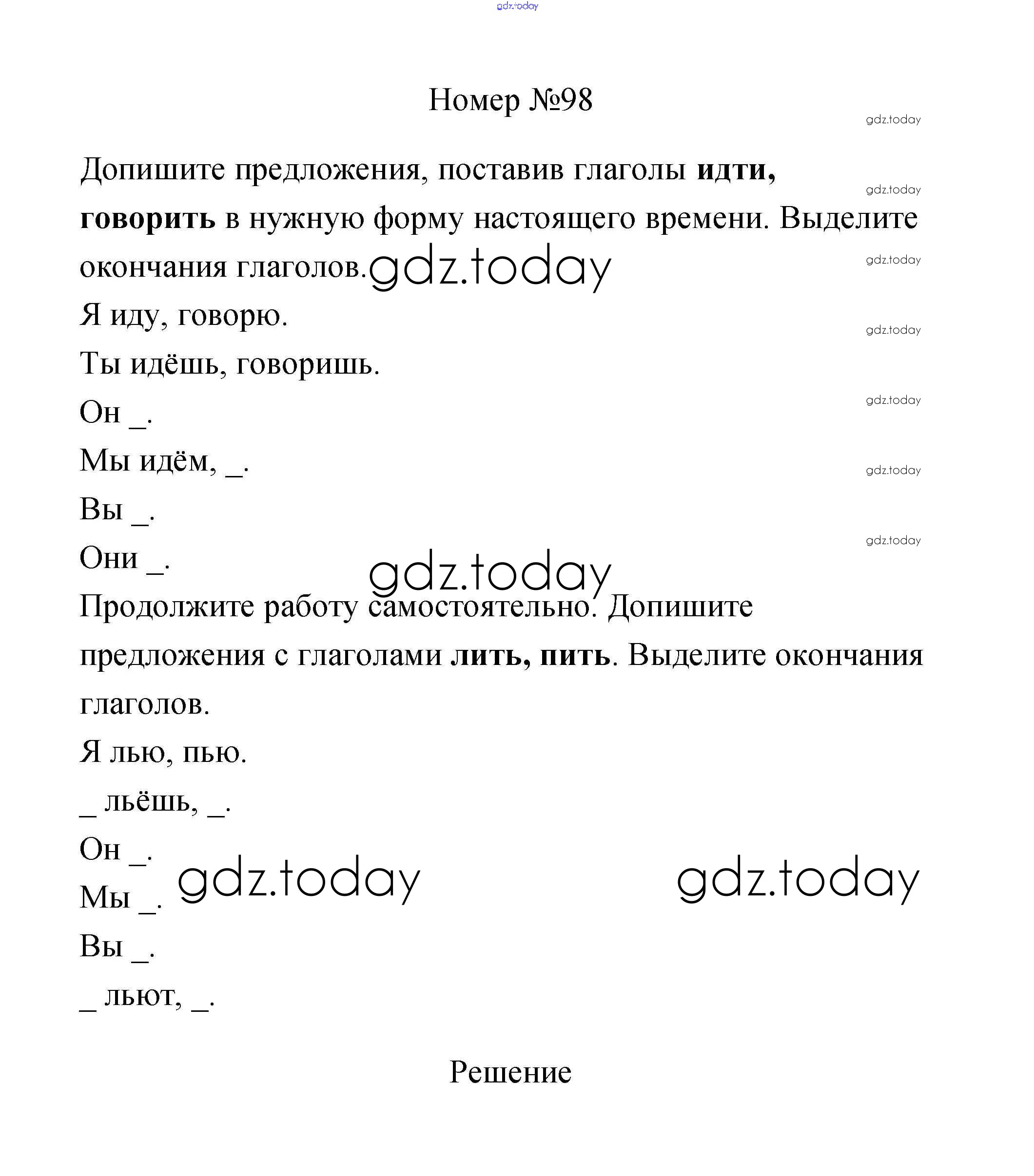 Ответы к Часть 2. Решение к заданиям 98 Рабочей тетради по Русскому языку для 3 класса Климанова, Бабушкина Просвещение Перспектива 2018