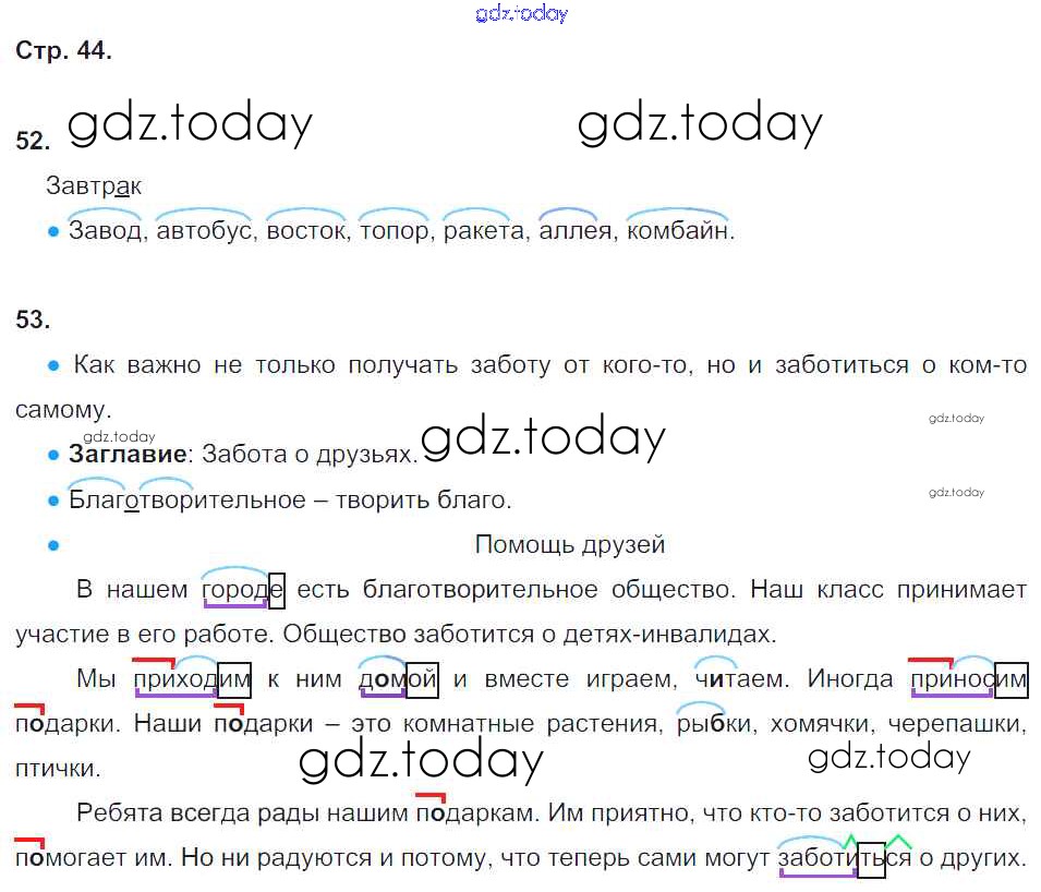 На страницах сайта gdz.today вы найдете учебный и вспомогательный материал, направленный на улучшения знаний школьной программы. ГДЗ - онлайн мир знаний Решение. Часть 1. Страницы 44 Рабочей тетради по Русскому языку для 3 класса Рамзаева, Савинкина Дрофа 2020
