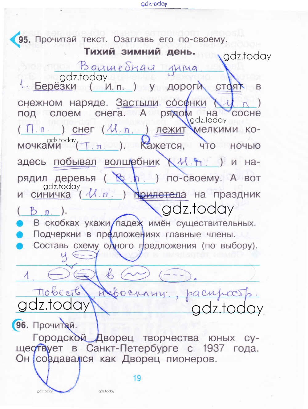 На страницах сайта gdz.today вы найдете учебный и вспомогательный материал, направленный на улучшения знаний школьной программы. ГДЗ - онлайн мир знаний Решение. Часть 2. Страницы 19 Рабочей тетради по Русскому языку для 3 класса Рамзаева, Савинкина Дрофа 2020