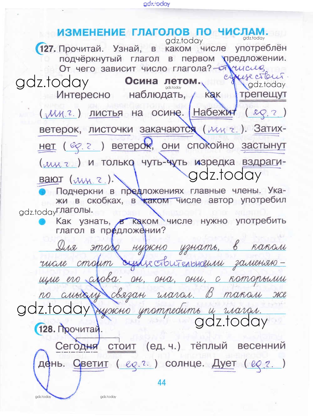 На страницах сайта gdz.today вы найдете учебный и вспомогательный материал, направленный на улучшения знаний школьной программы. ГДЗ - онлайн мир знаний Решение. Часть 2. Страницы 44 Рабочей тетради по Русскому языку для 3 класса Рамзаева, Савинкина Дрофа 2020