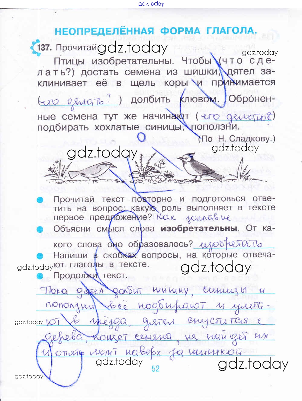 На страницах сайта gdz.today вы найдете учебный и вспомогательный материал, направленный на улучшения знаний школьной программы. ГДЗ - онлайн мир знаний Решение. Часть 2. Страницы 52 Рабочей тетради по Русскому языку для 3 класса Рамзаева, Савинкина Дрофа 2020